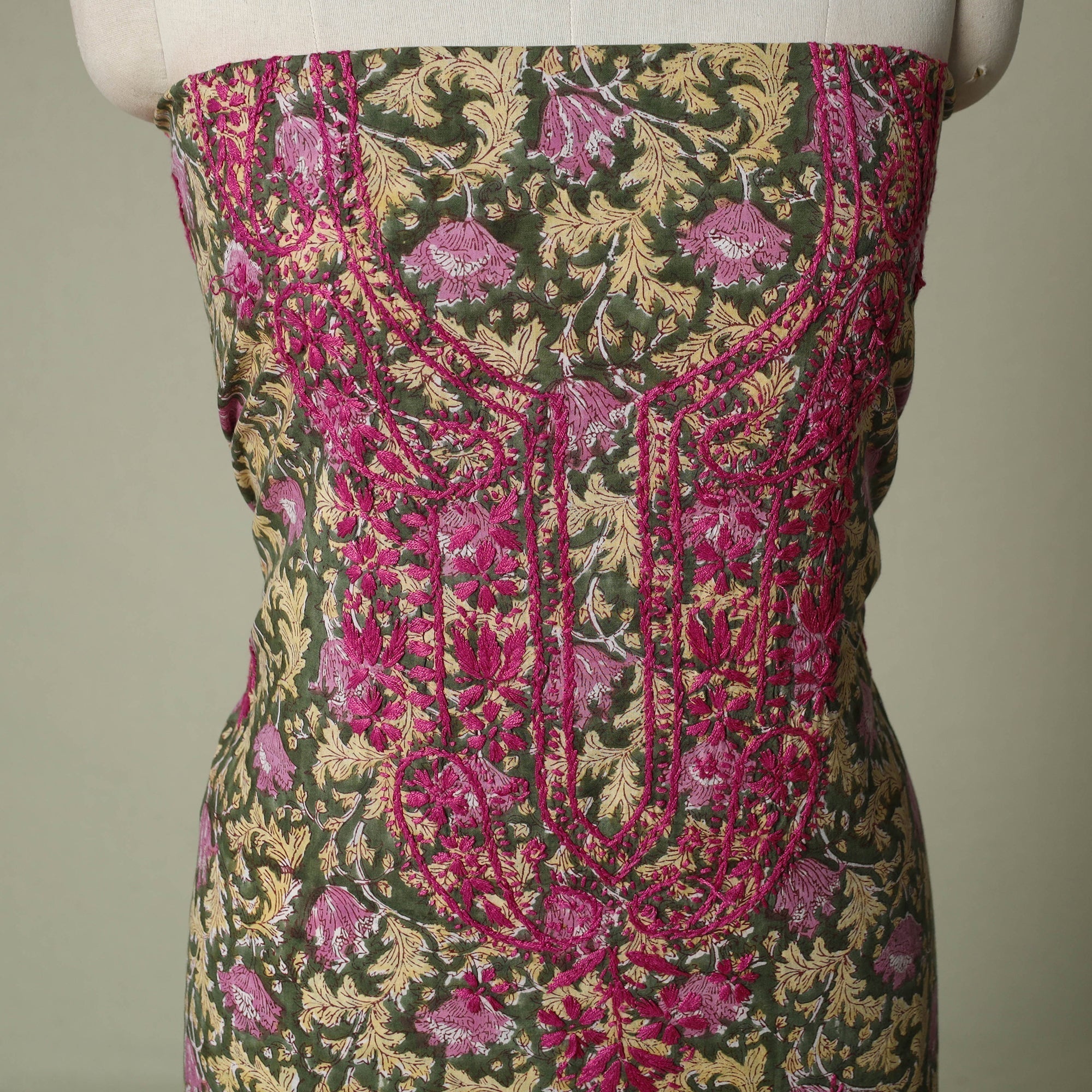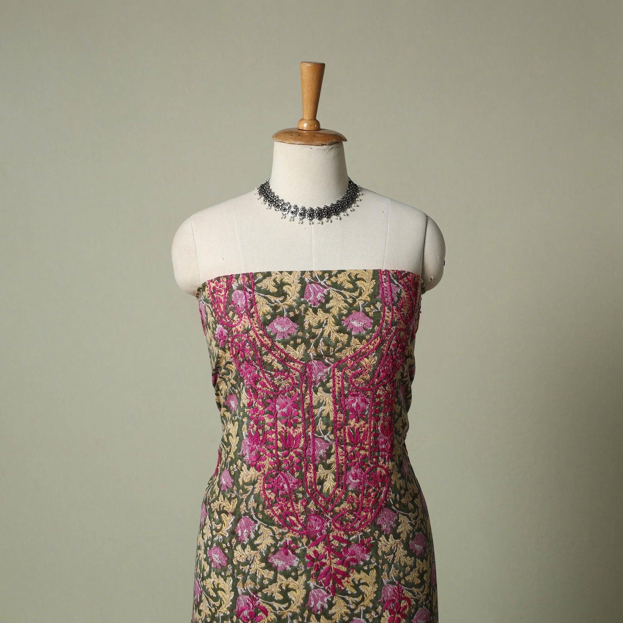 • Lucknowi chikankari hand embroidery sanganeri unstitched