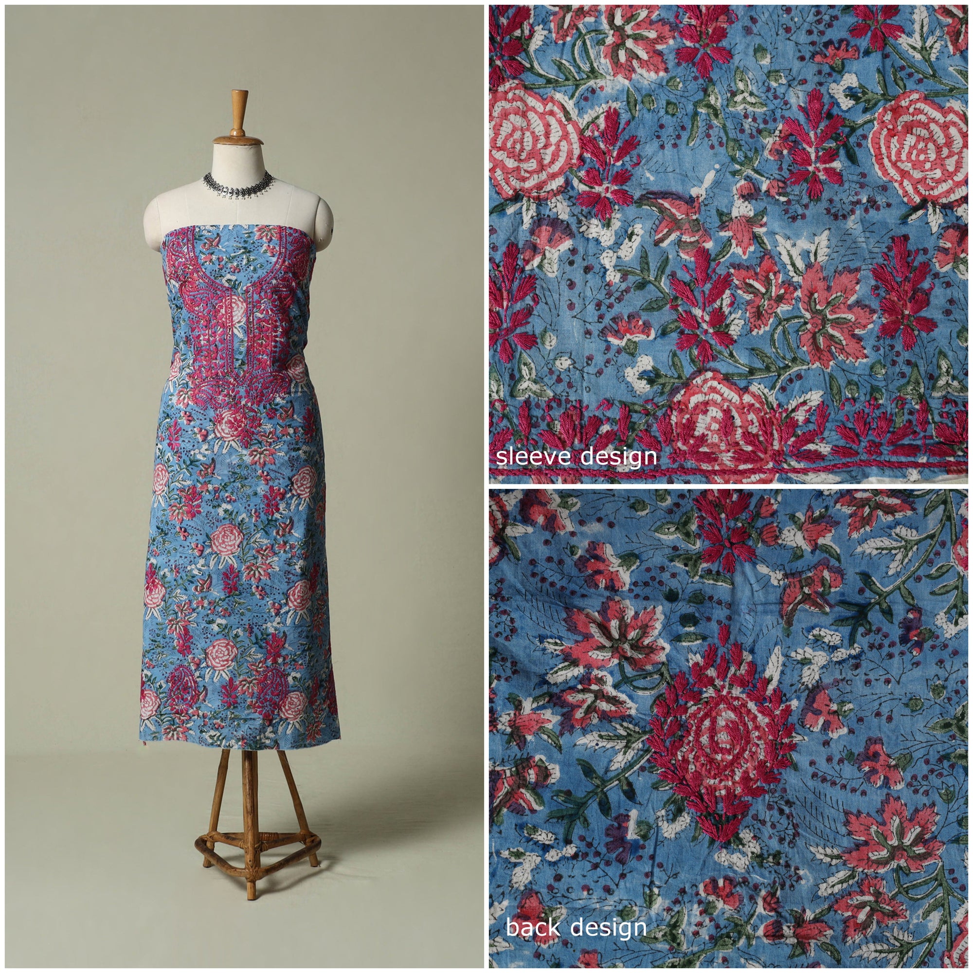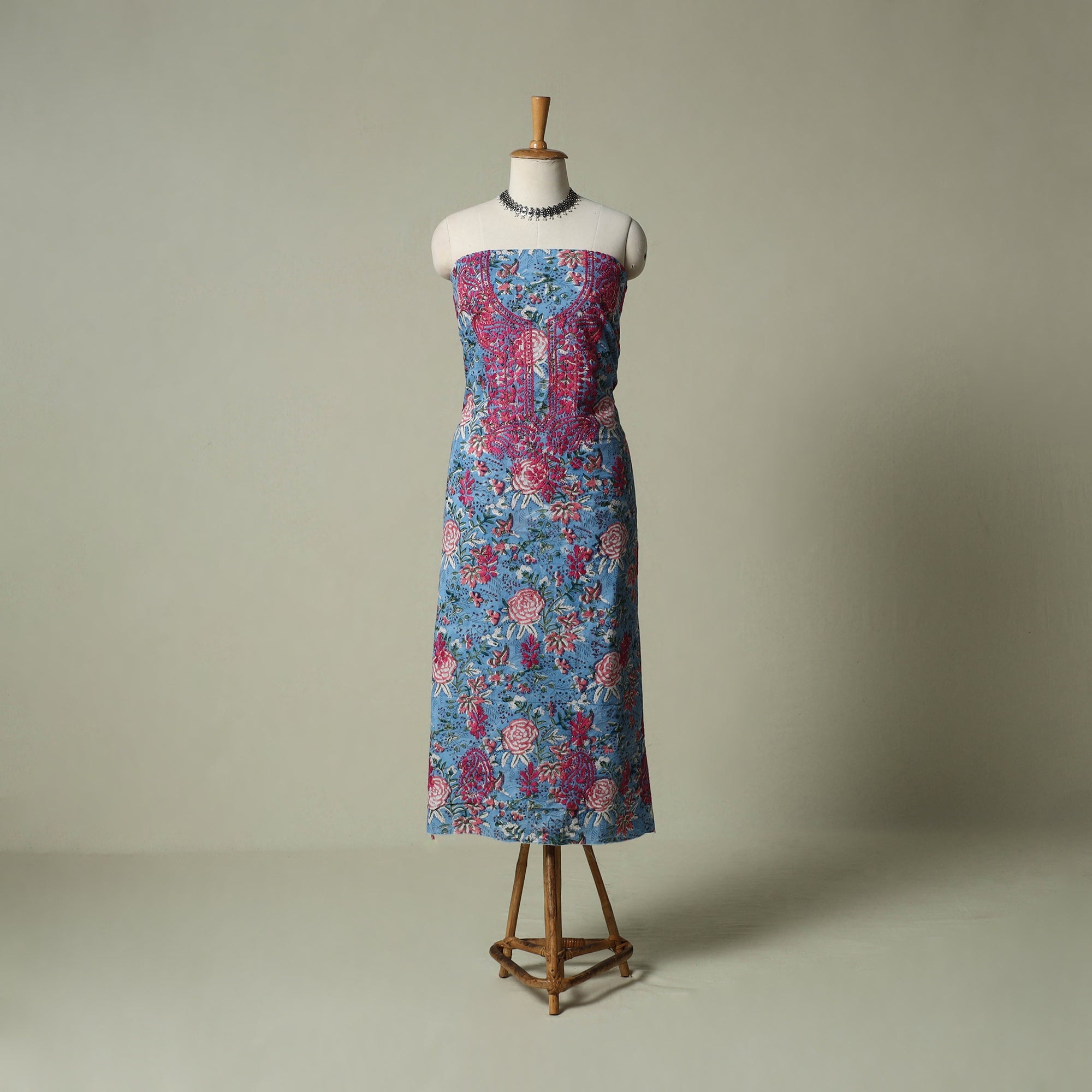 Lucknowi chikankari cotton sanganeri unstitched kurta material beautifully brings together two centuries old crafts delicate chikankari hand embroidery with traditional sanganeri hand block printing. While chikankari involves fine, detailed needlework done by hand, Sanganeri printing uses hand-carved wooden blocks to create intricate floral patterns. Crafted by skilled artisans, it can be tailored to suit your style, making it perfect for both occasions and refined everyday wear.