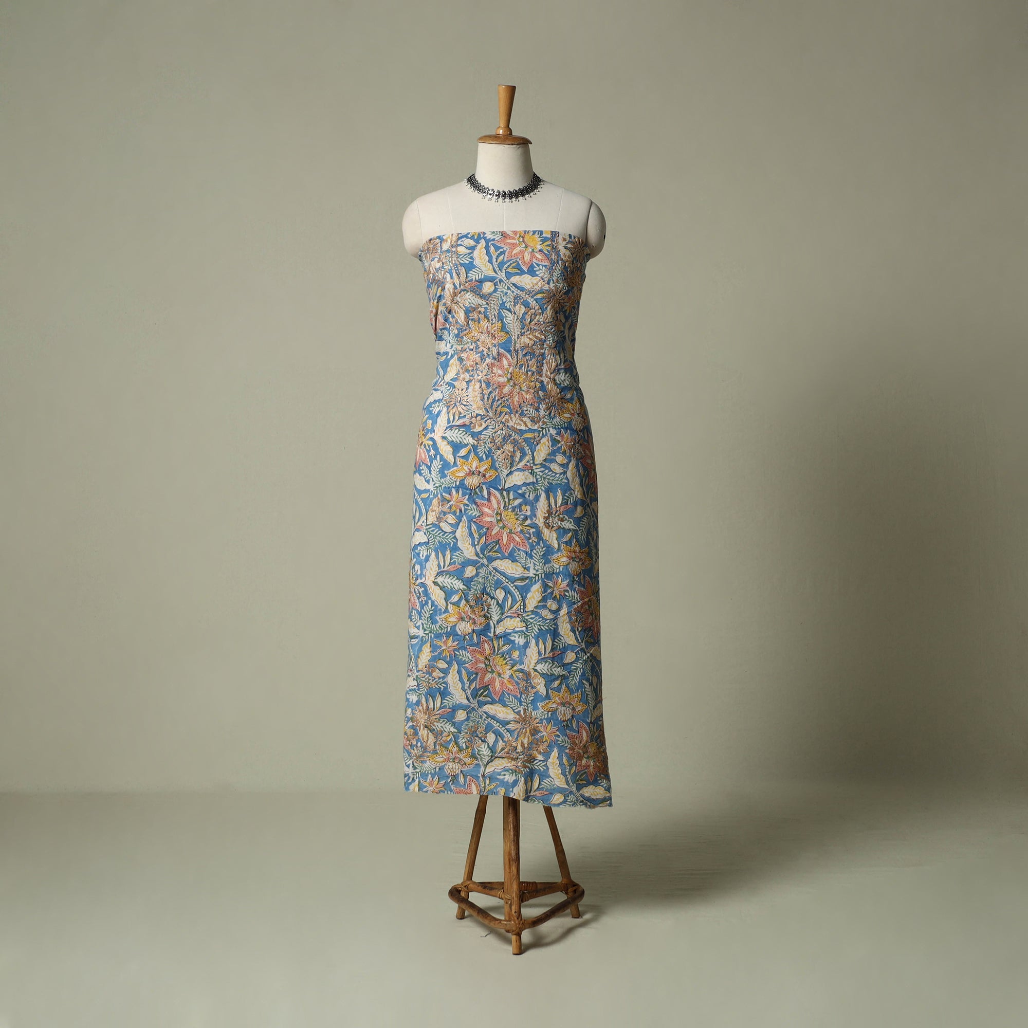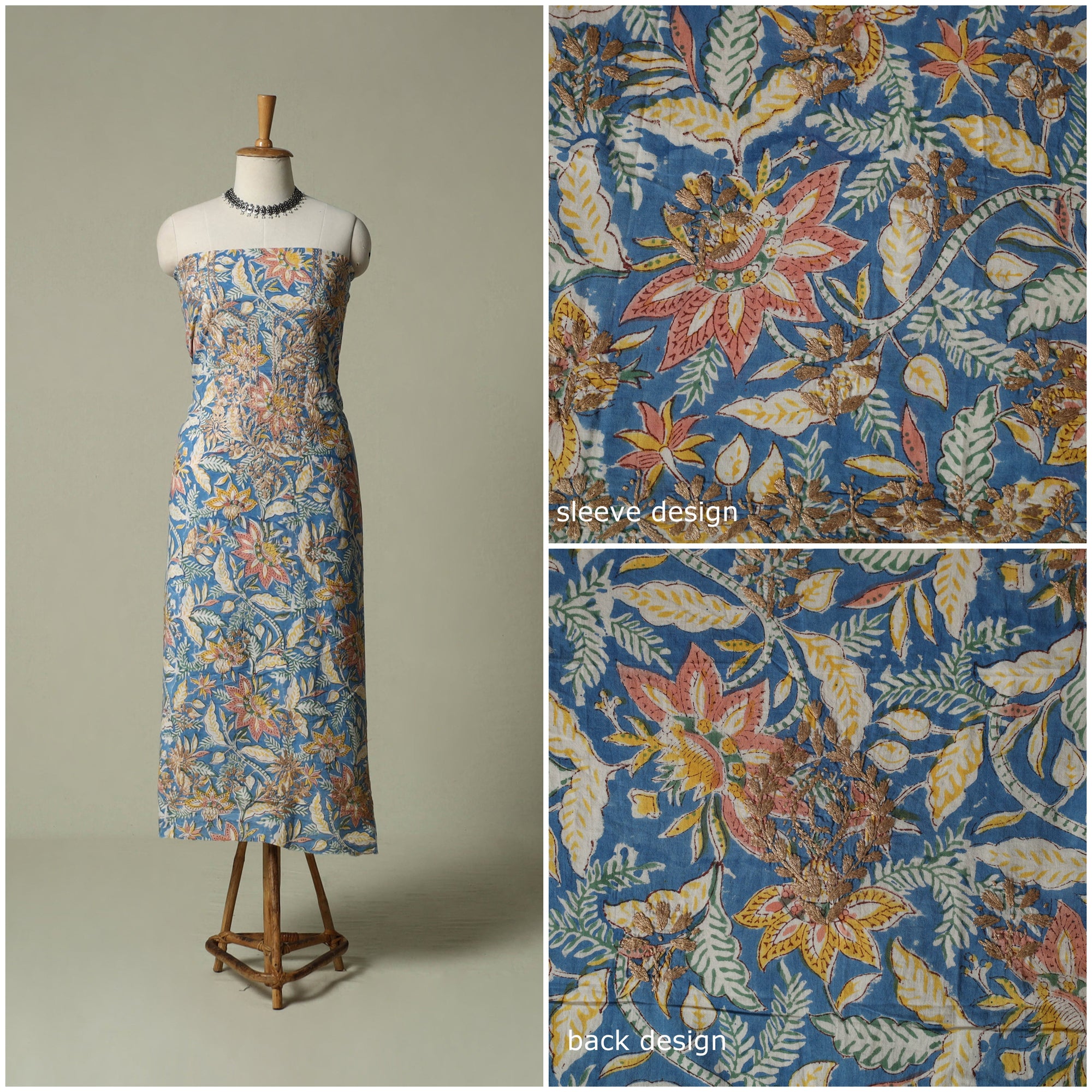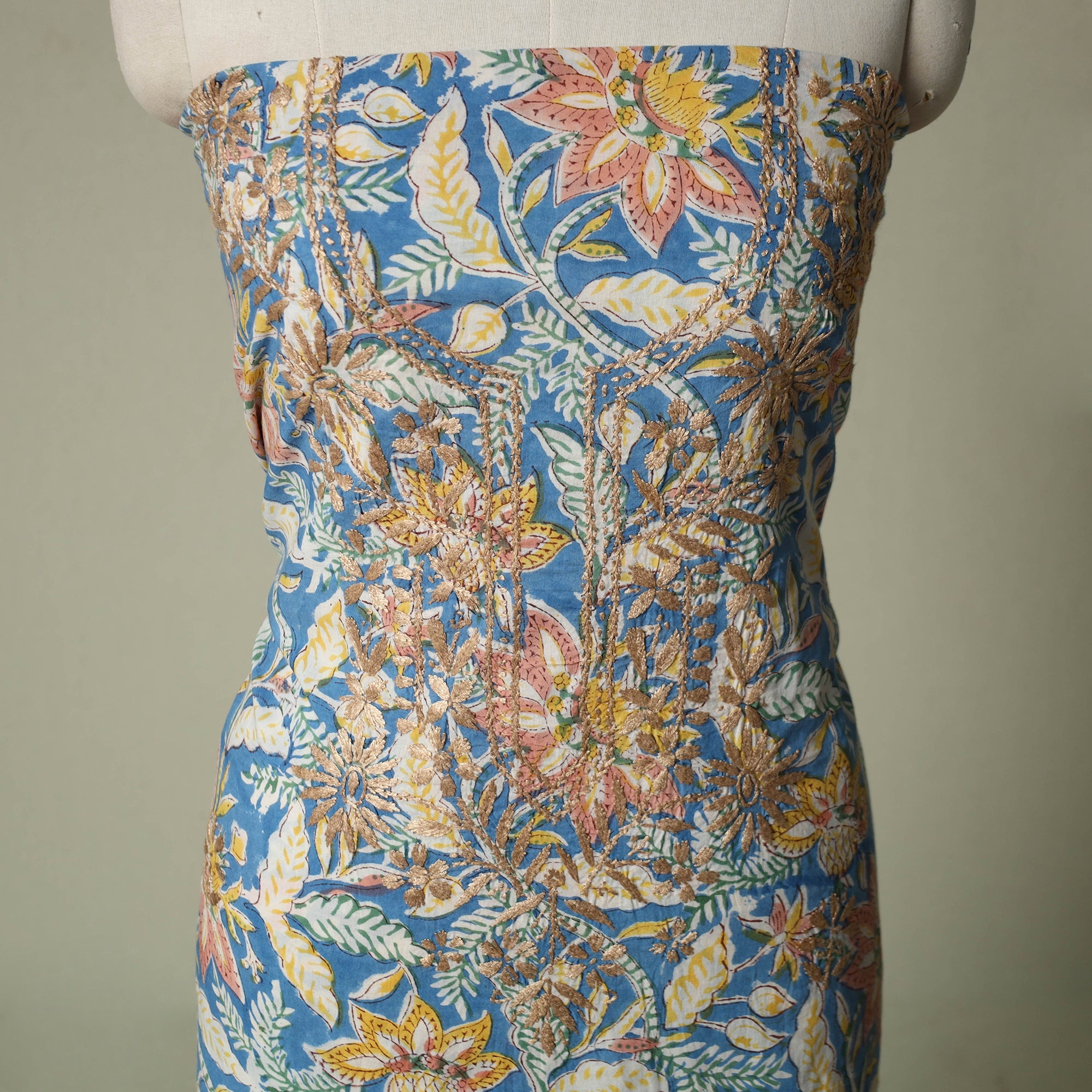 Lucknowi chikankari cotton sanganeri unstitched kurta material beautifully brings together two centuries old crafts delicate chikankari hand embroidery with traditional sanganeri hand block printing. While chikankari involves fine, detailed needlework done by hand, Sanganeri printing uses hand-carved wooden blocks to create intricate floral patterns. Crafted by skilled artisans, it can be tailored to suit your style, making it perfect for both occasions and refined everyday wear.