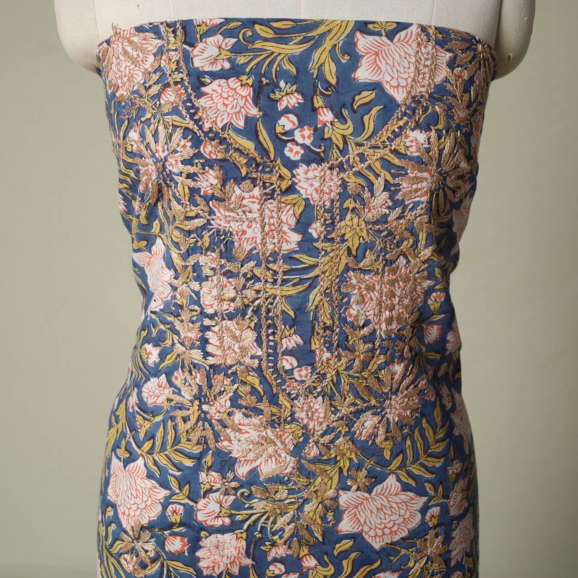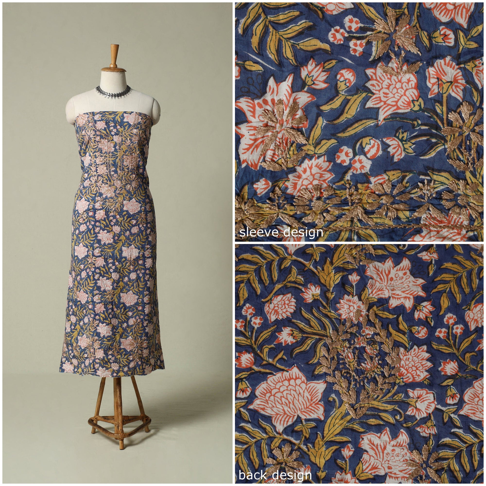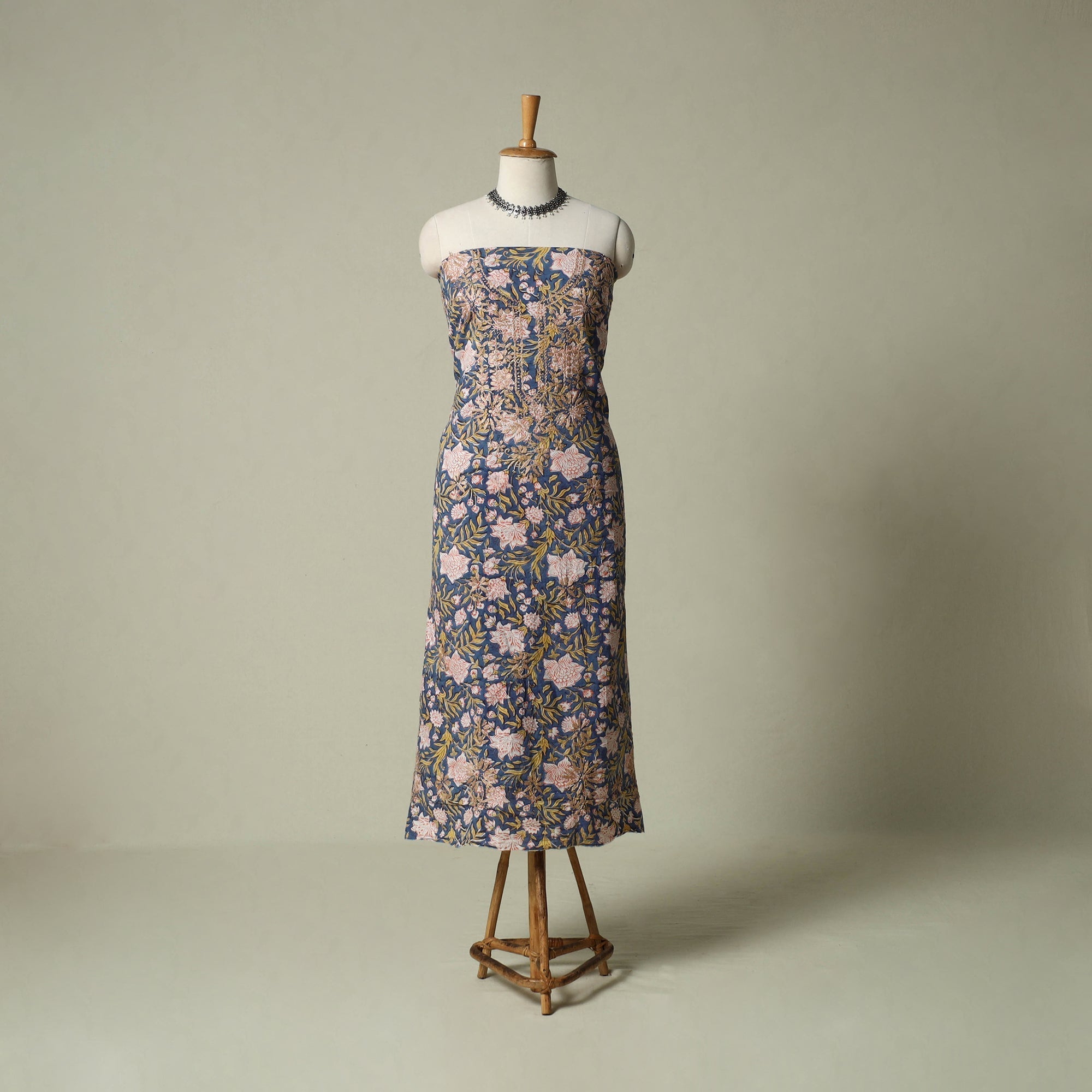 Lucknowi chikankari cotton sanganeri unstitched kurta material beautifully brings together two centuries old crafts delicate chikankari hand embroidery with traditional sanganeri hand block printing. While chikankari involves fine, detailed needlework done by hand, Sanganeri printing uses hand-carved wooden blocks to create intricate floral patterns. Crafted by skilled artisans, it can be tailored to suit your style, making it perfect for both occasions and refined everyday wear.