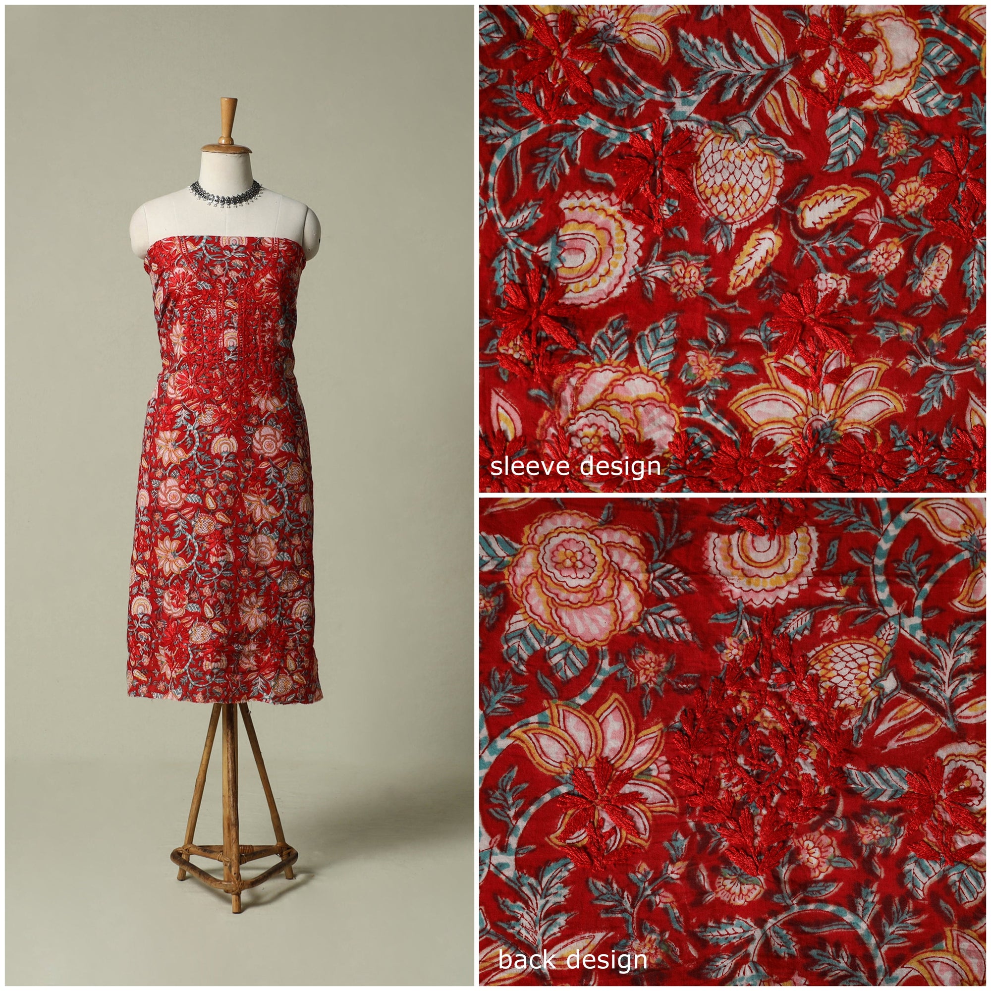 Lucknowi Chikankari Hand Embroidery Sanganeri Unstitched Kurta Material (2.5M) 75