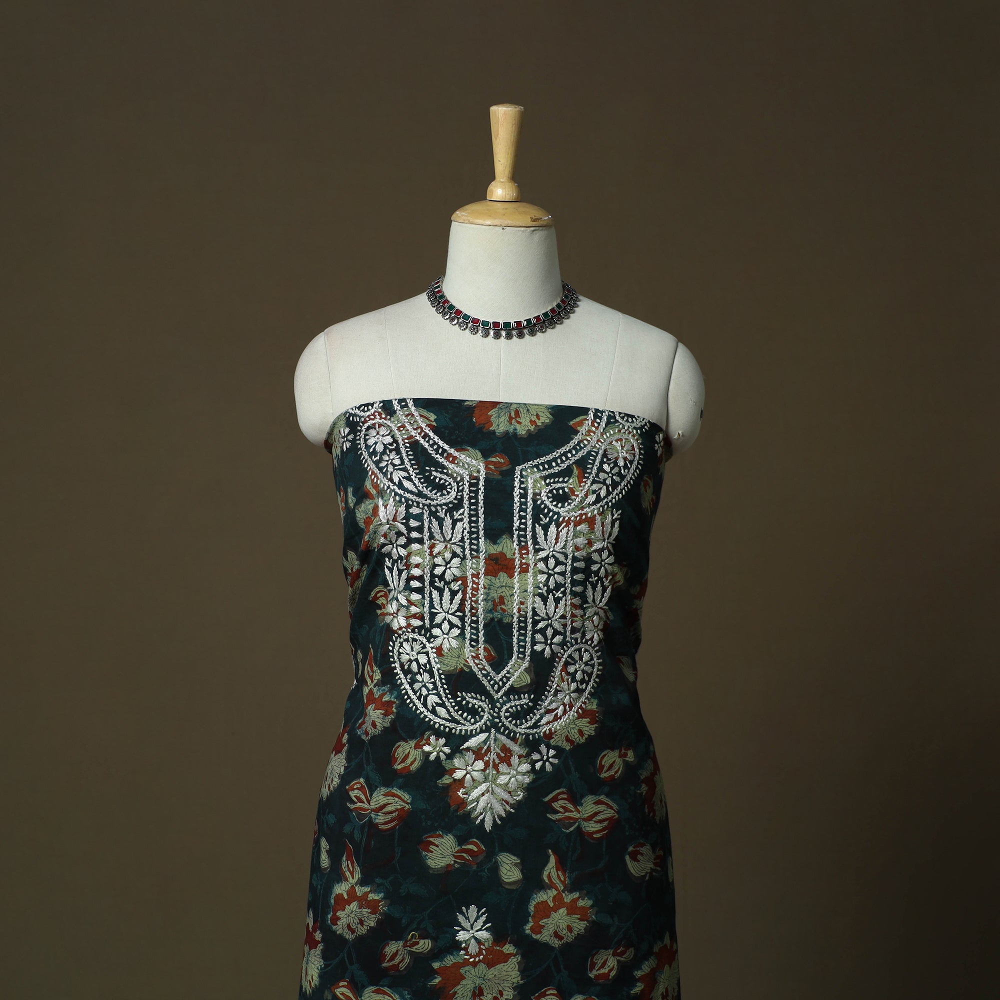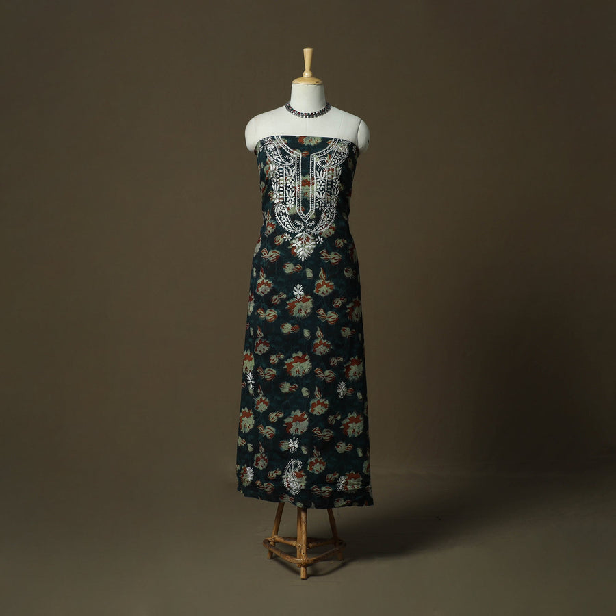• Lucknowi chikankari hand work bagru block print unstitched