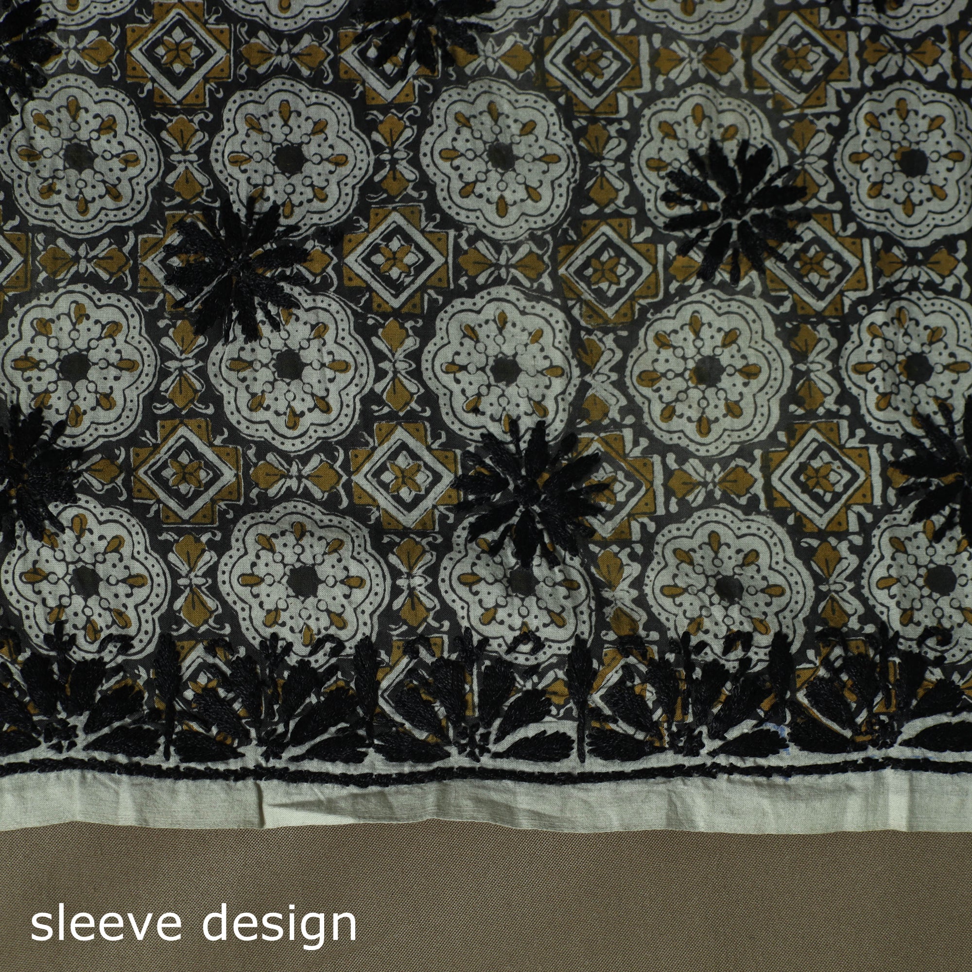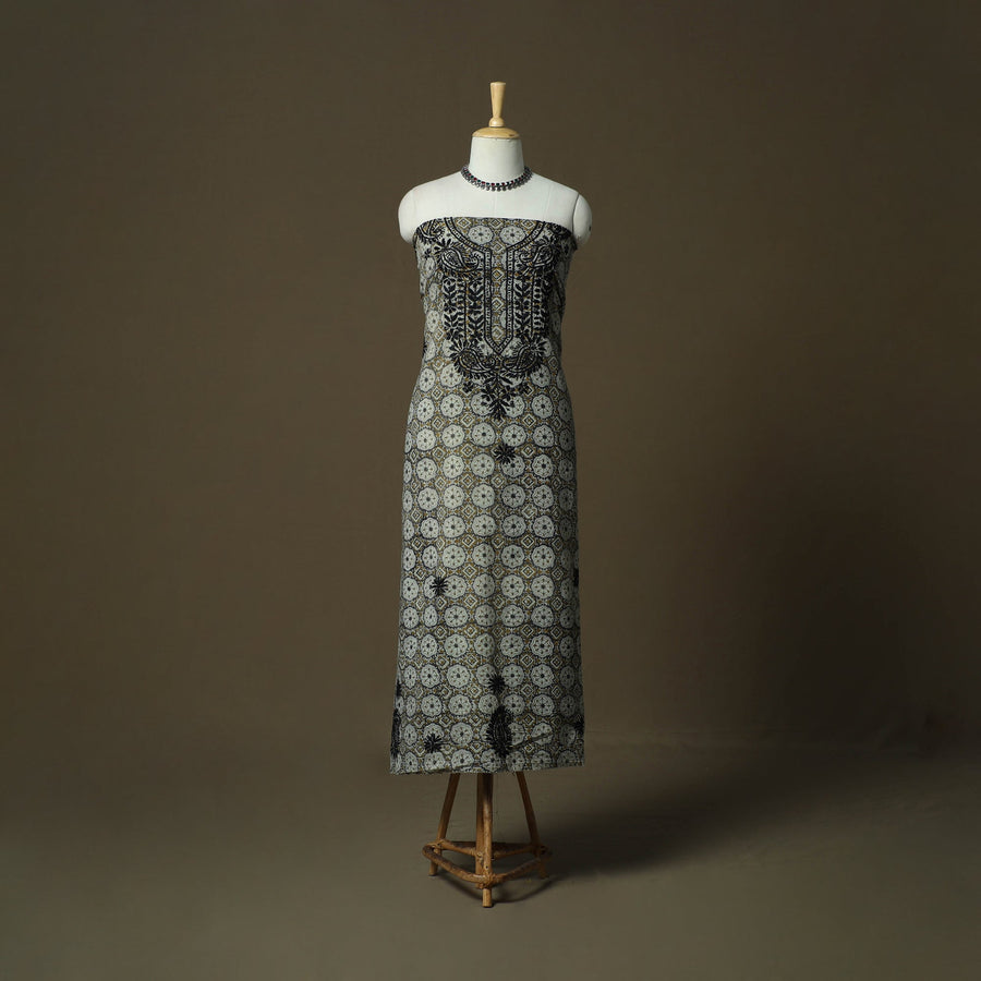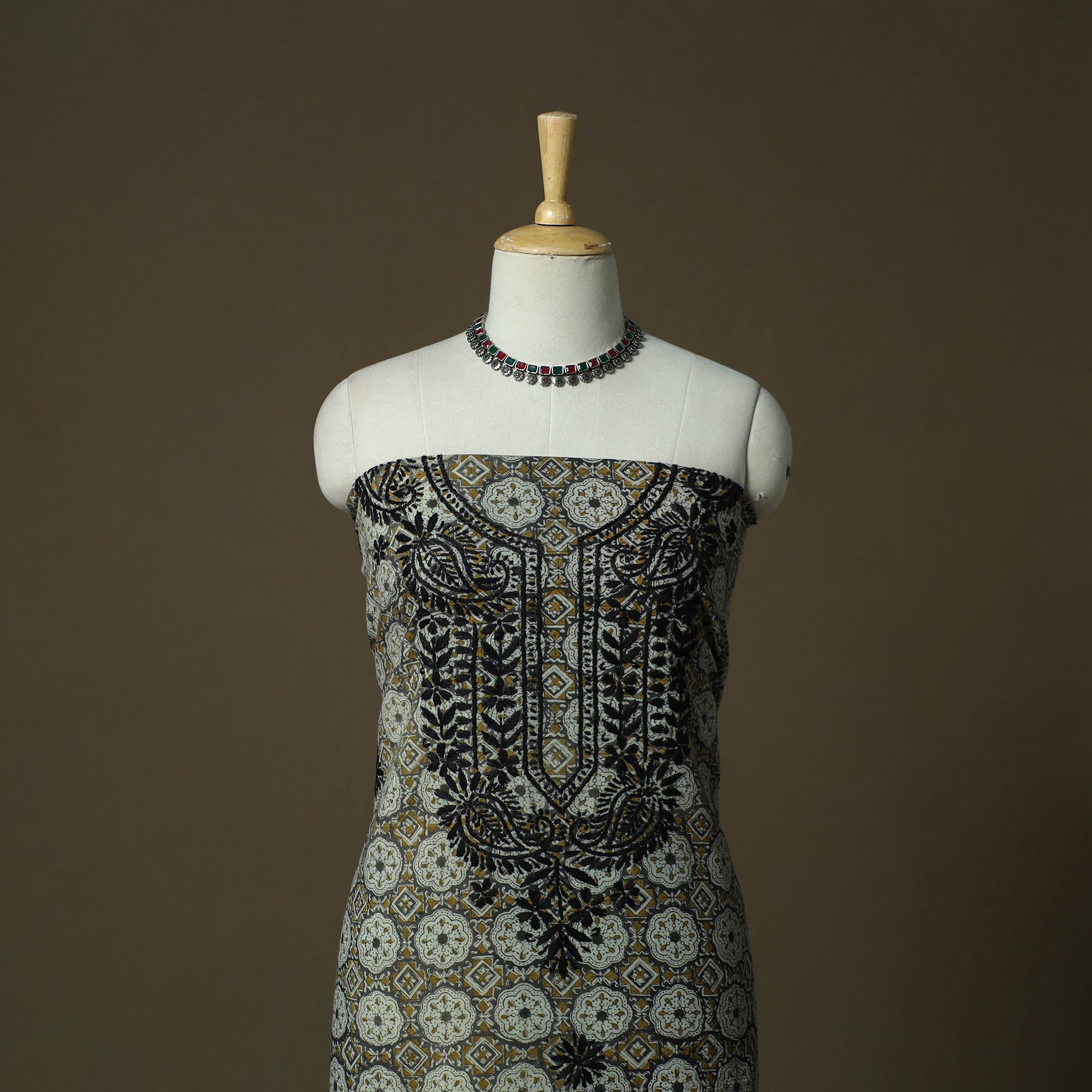 Lucknowi Chikankari Hand Work Bagru Block Print Unstitched Kurta Material (2.5M) 07