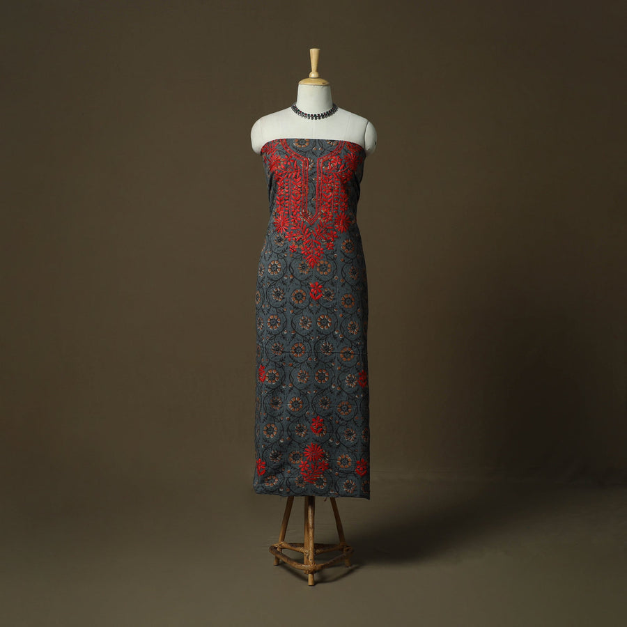 Lucknowi Chikankari Hand Work Bagru Block Print Unstitched Kurta Material (2.5M) 09
