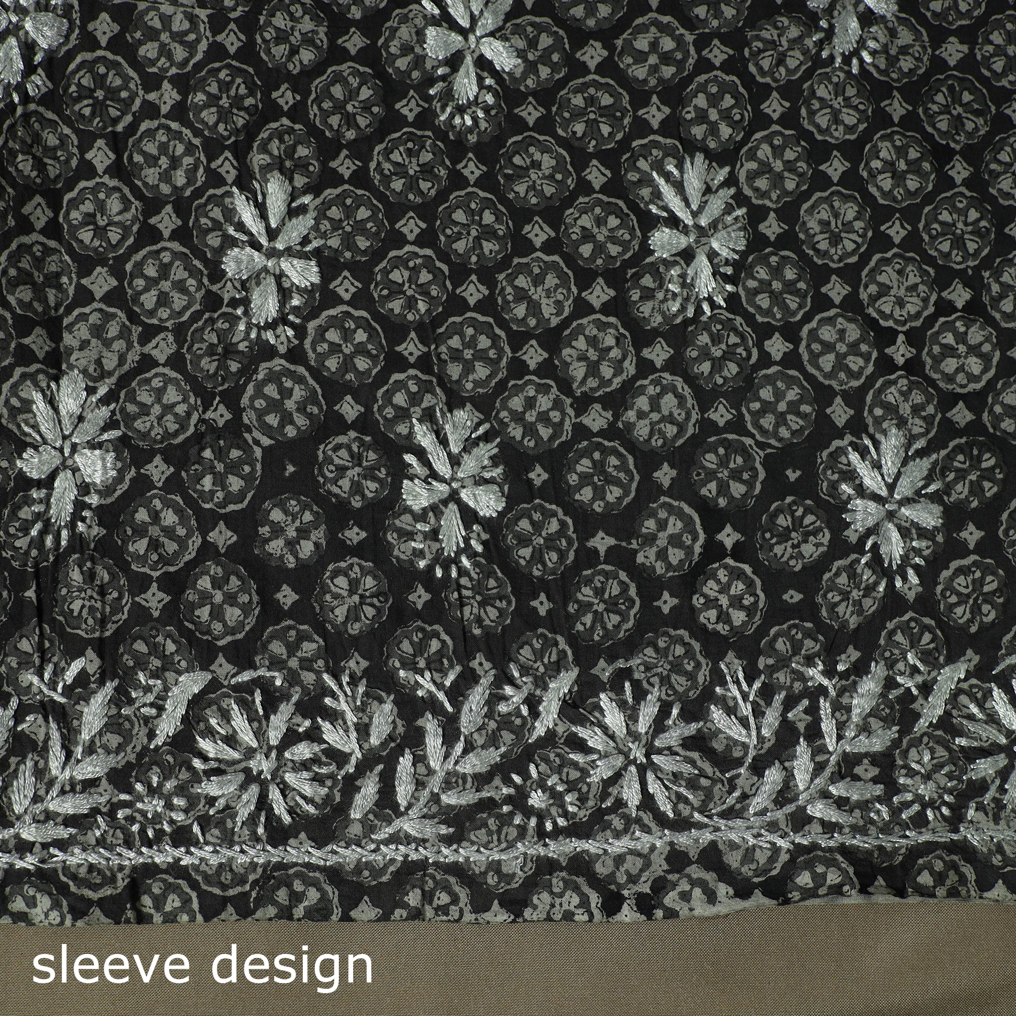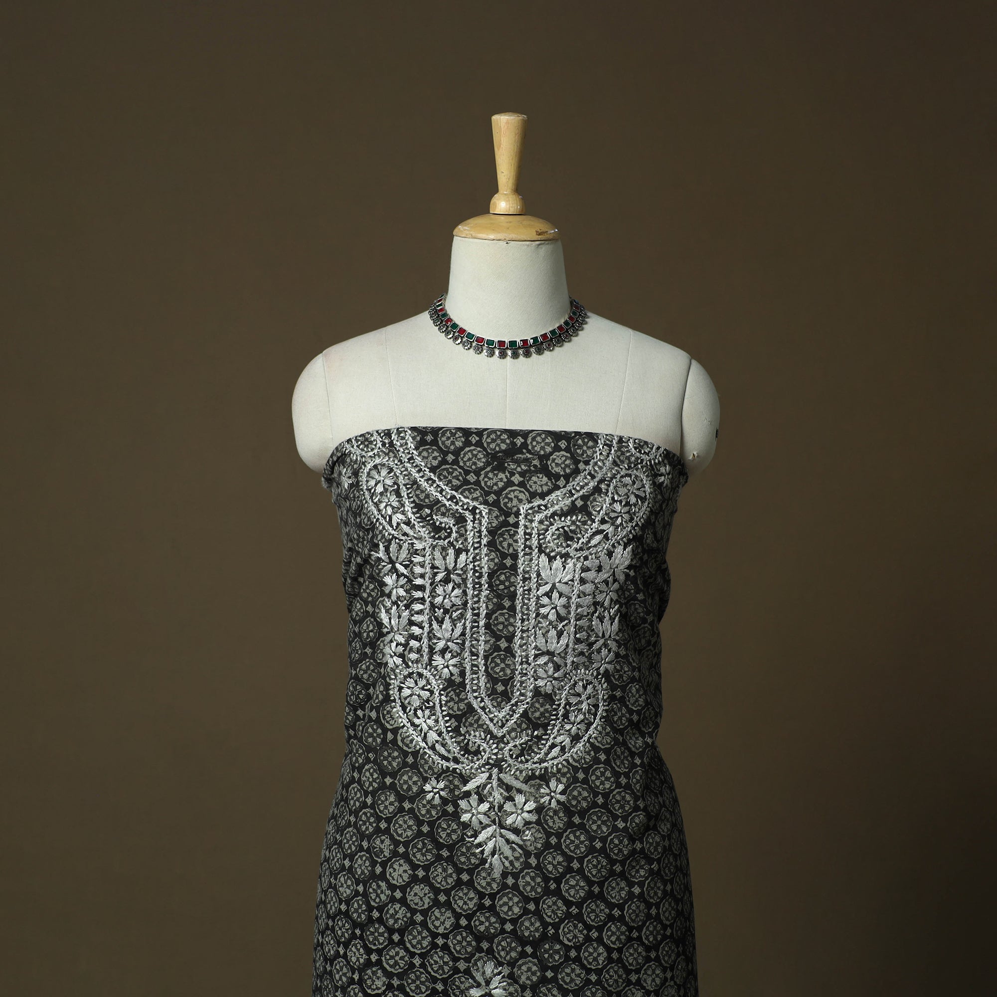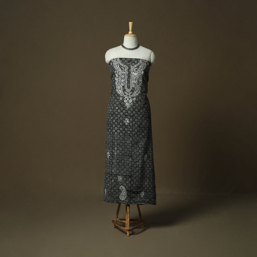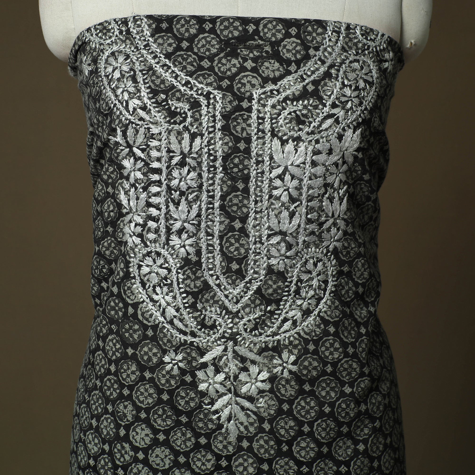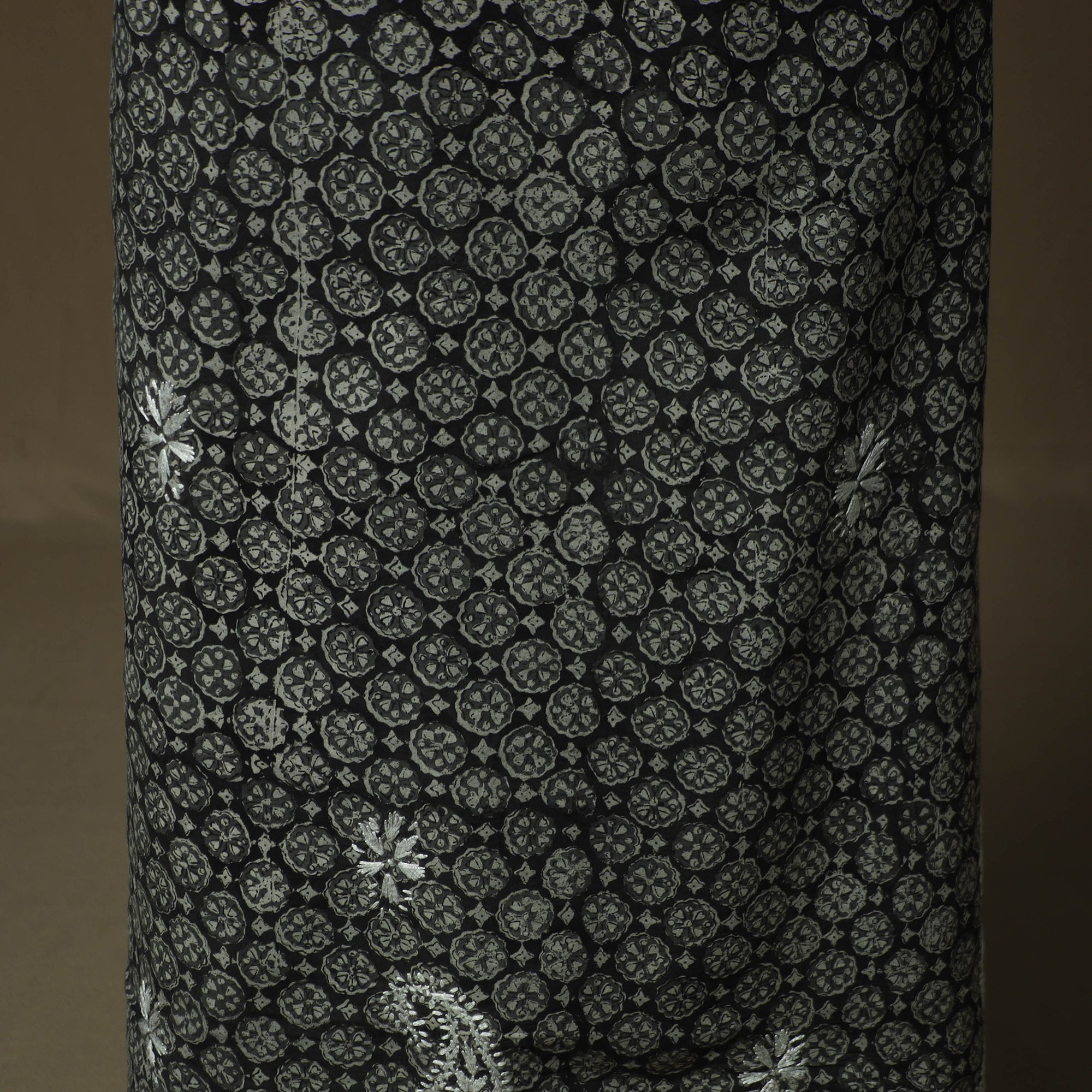 Lucknowi Chikankari Hand Work Bagru Block Print Unstitched Kurta Material (2.5M) 11