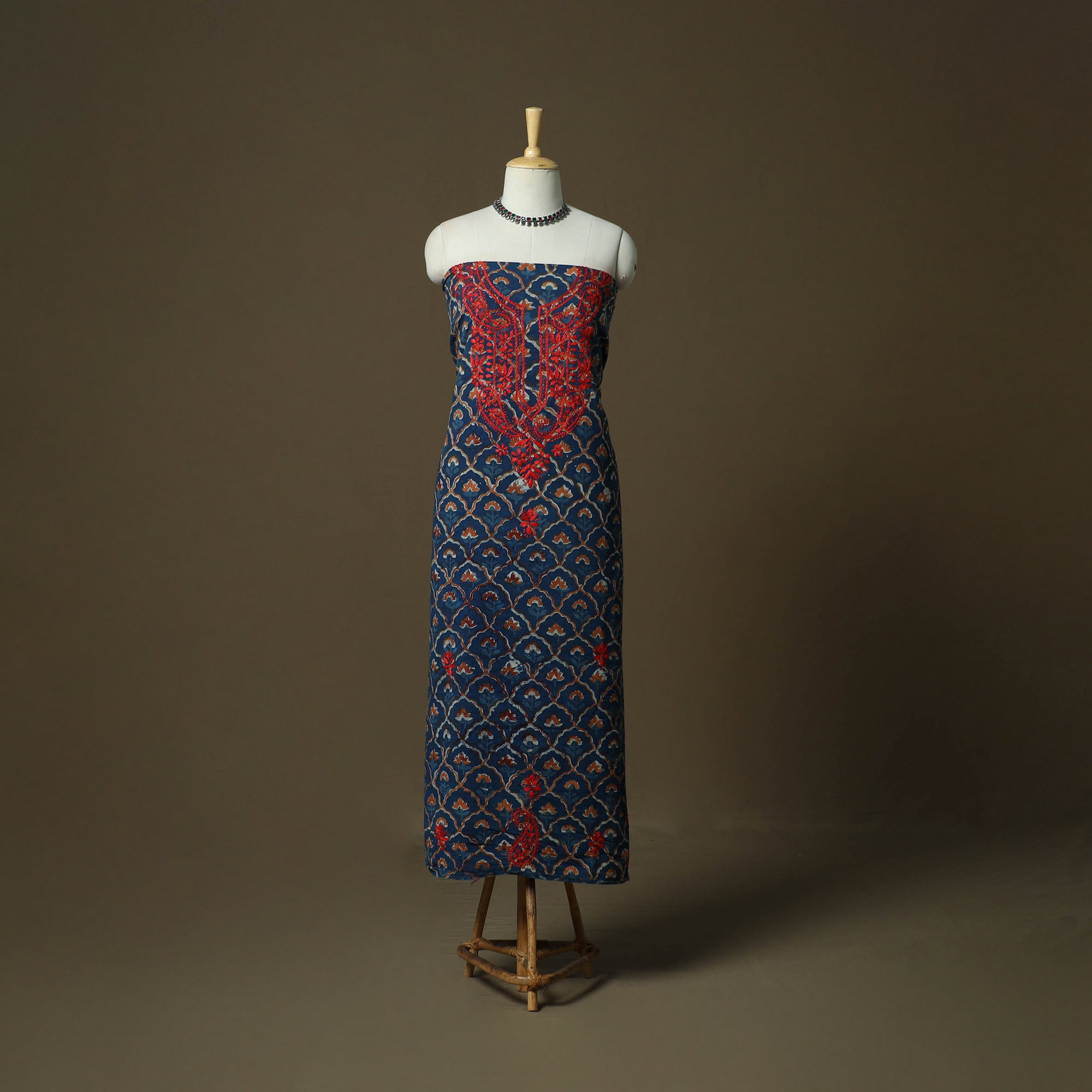 Lucknowi Chikankari Hand Work Bagru Block Print Unstitched Kurta Material (2.5M) 13