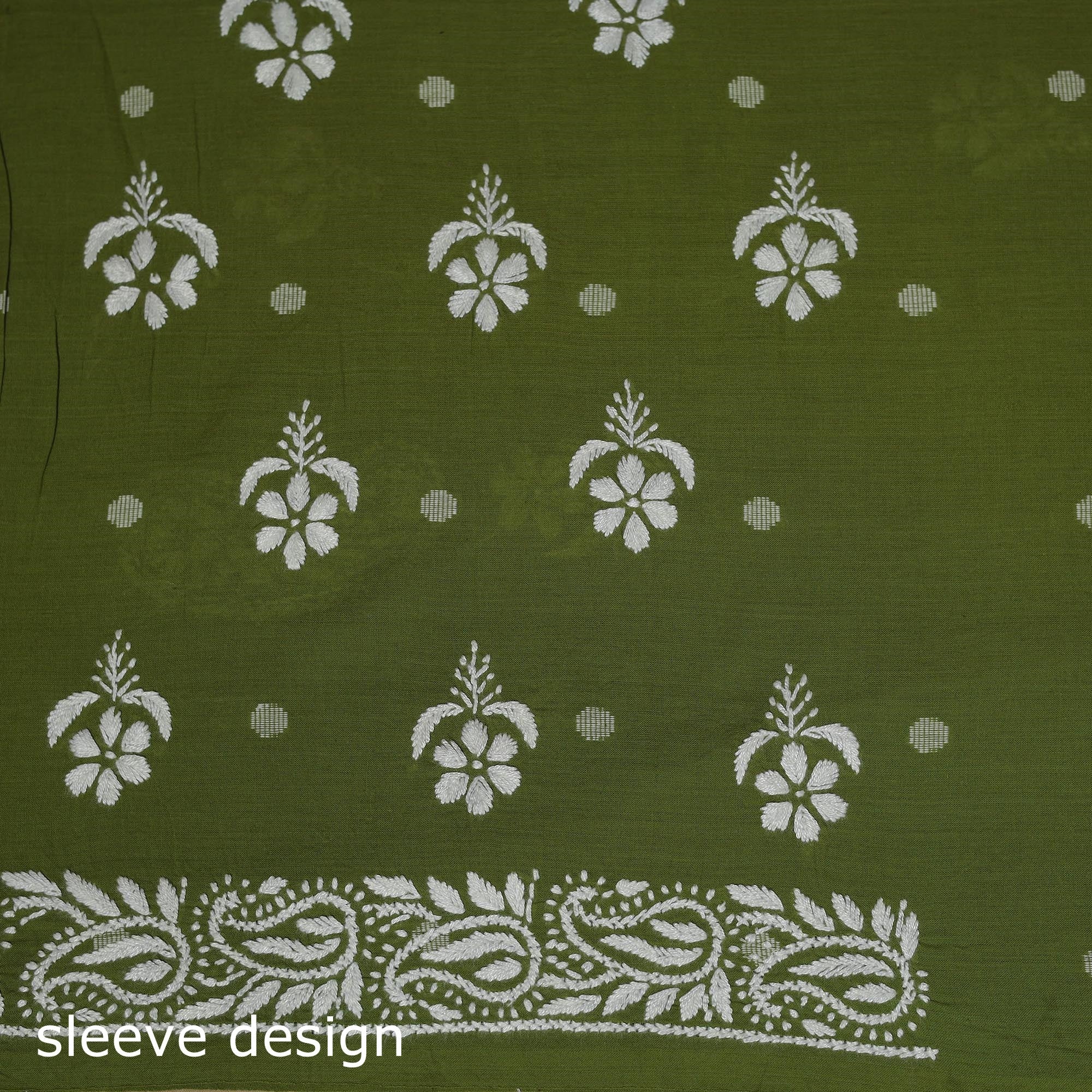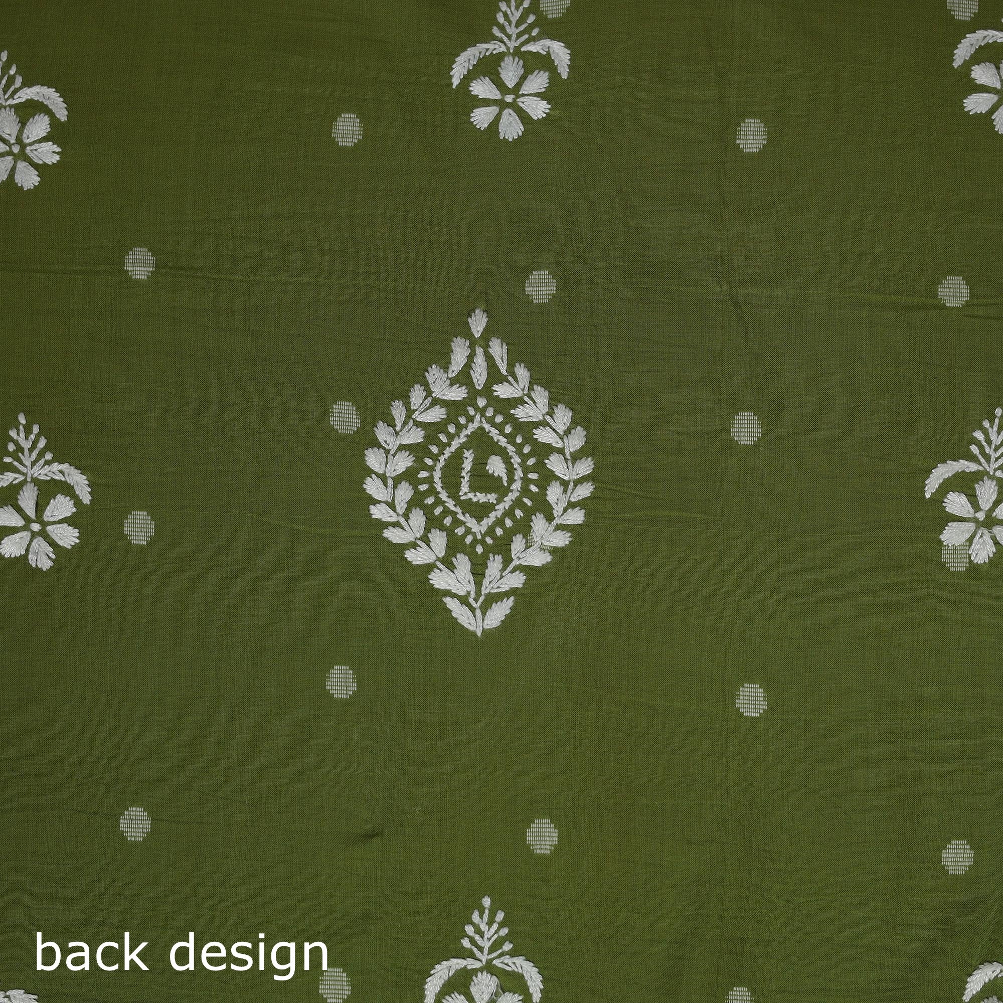 Green - Lucknowi Hand Embroidered Chikankari Georgette 3pc Unstitched Dress Material 15