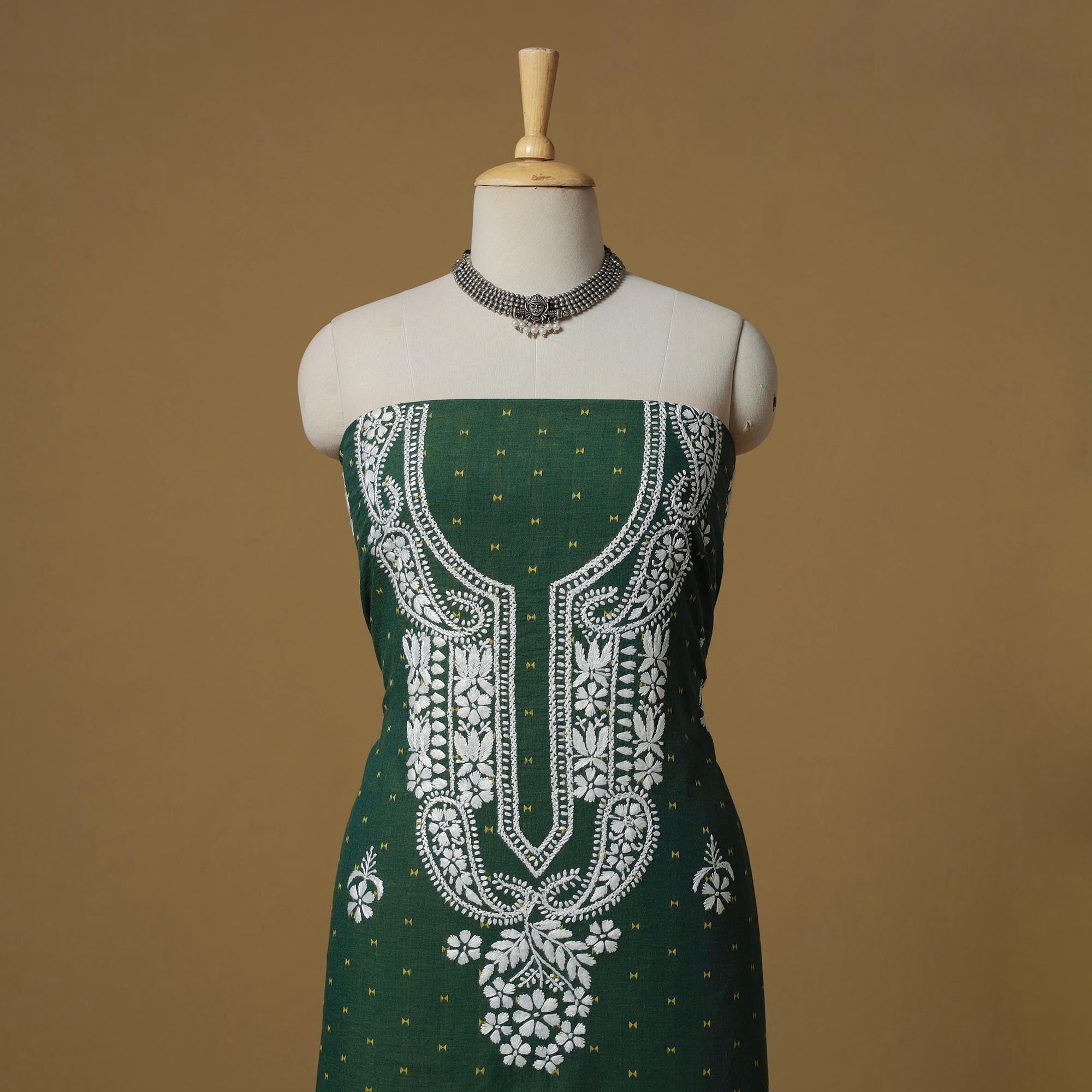 Green - Lucknowi Hand Embroidered Chikankari Georgette 3pc Unstitched Dress Material 14