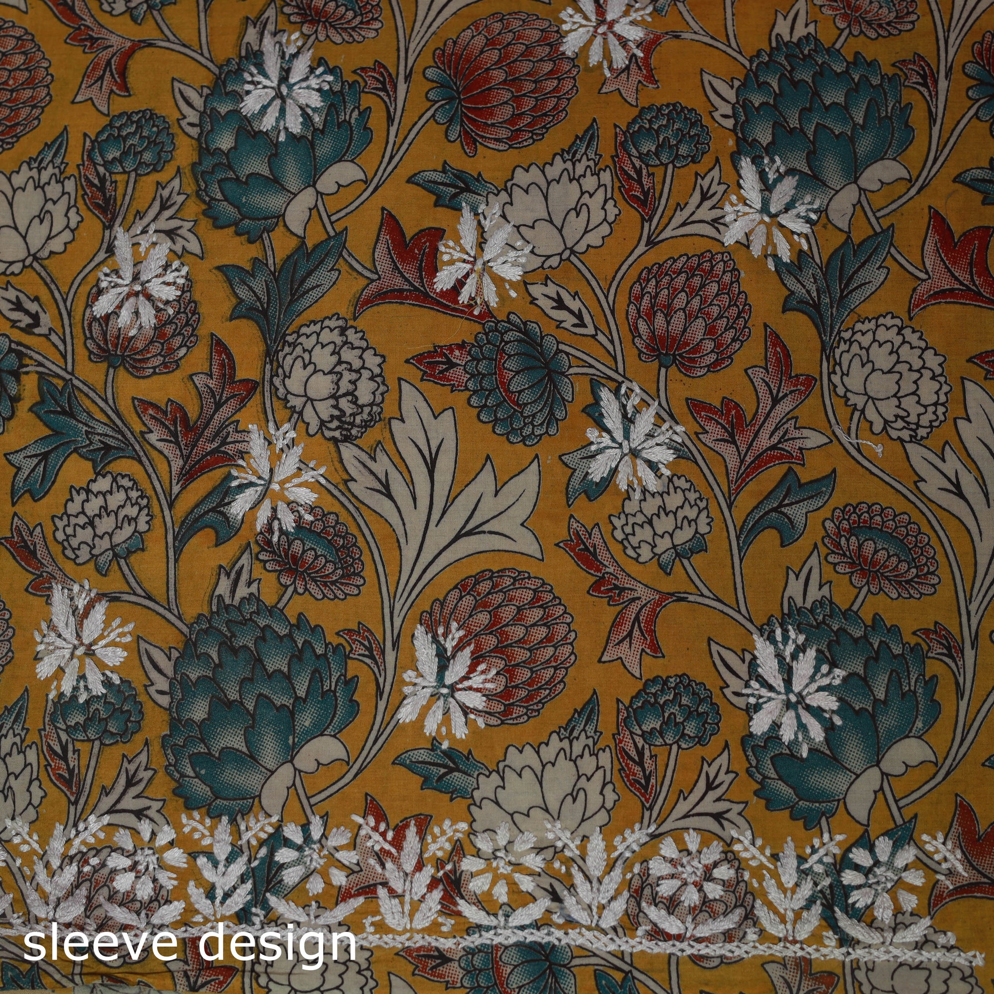 Lucknowi chikankari cotton kalamkari unstitched kurta material showcases the elegance of traditional embroidery from Lucknow. Known for its intricate motifs such as florals and jaali, the chikankari work is done using subtle white and pastel threads, with most of the time spent on detailed hand embroidery. This piece beautifully blends fine chikankari embroidery by Lamiya Creation artisans with intricate kalamkari screen printing. It is ideal for festive gatherings as well as graceful everyday wear.