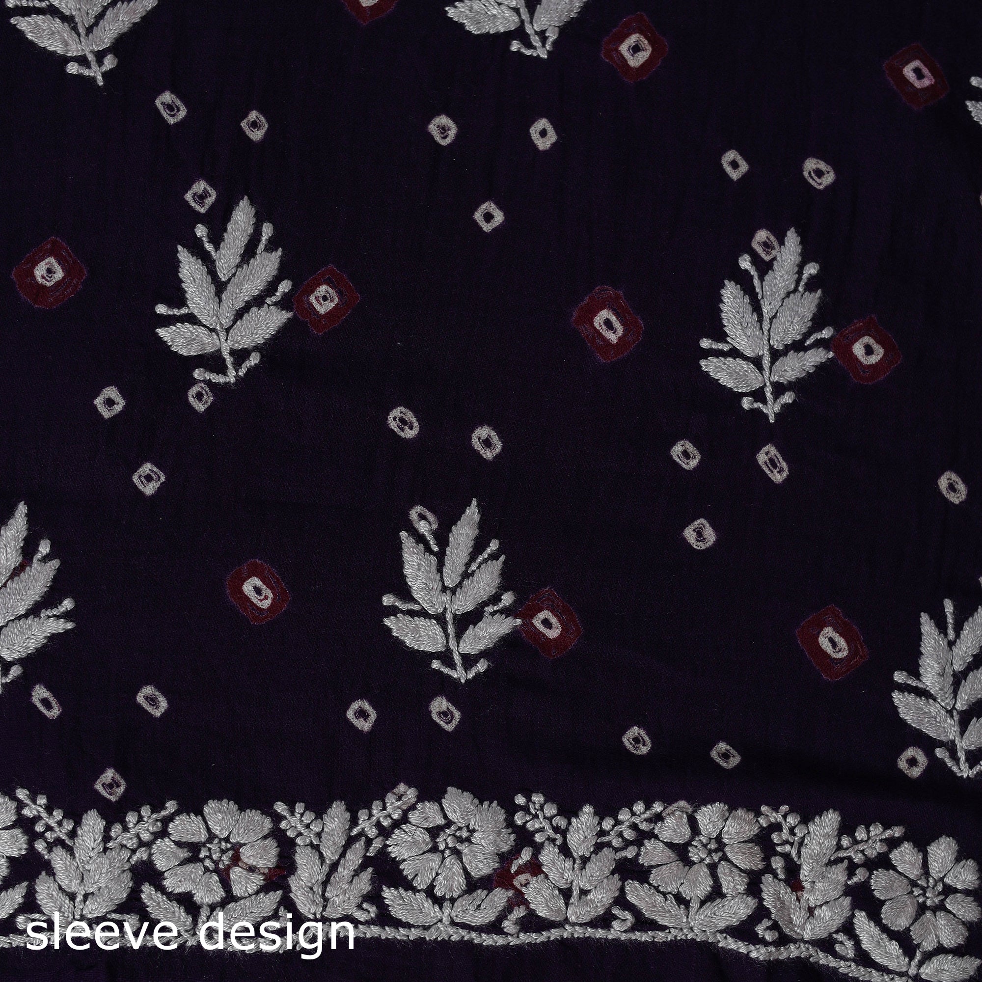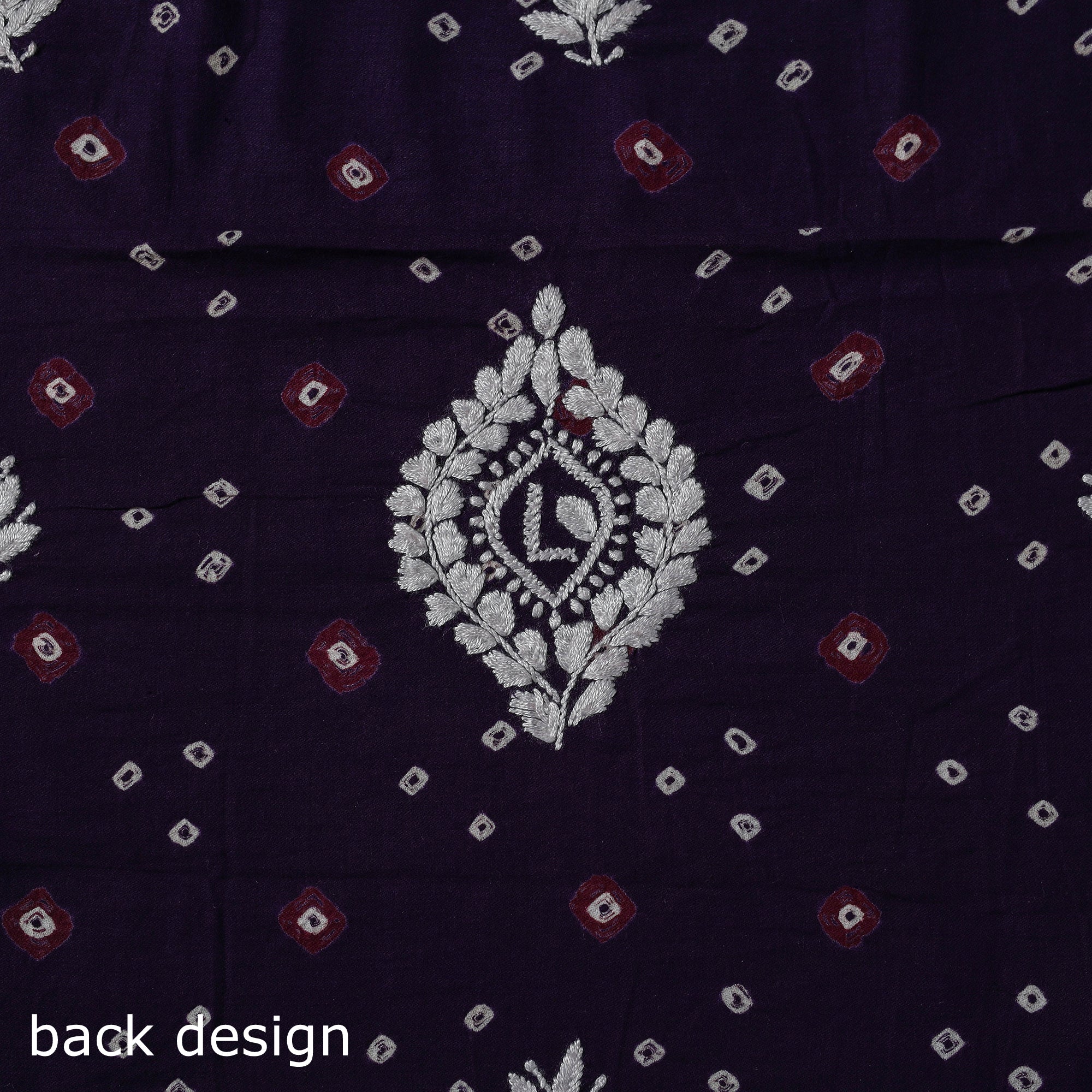 This purple lucknowi chikankari cotton bandhani tie-dye unstitched kurta material combines the refined charm of traditional Chikankari hand embroidery with the lively appeal of Bandhani patterns. The delicate needlework from Lucknow blends effortlessly with the dotted tie-dye design, creating a fabric that feels both graceful and sophisticated. Perfect for festive occasions or elevated everyday wear, it can be tailored to your preferred style for a polished and timeless look.