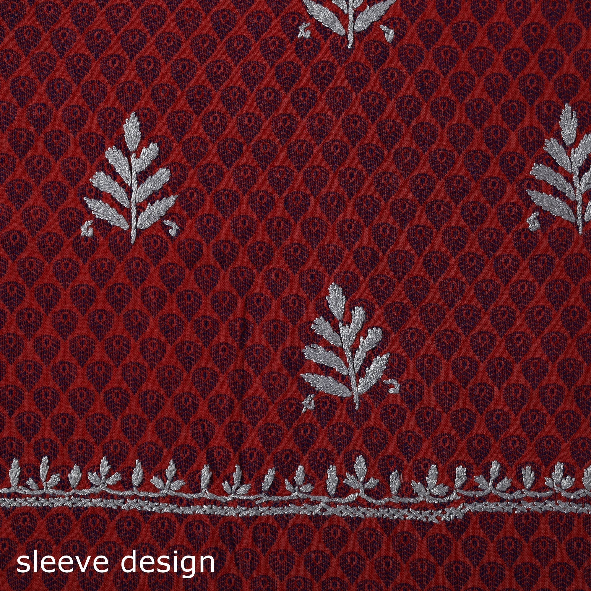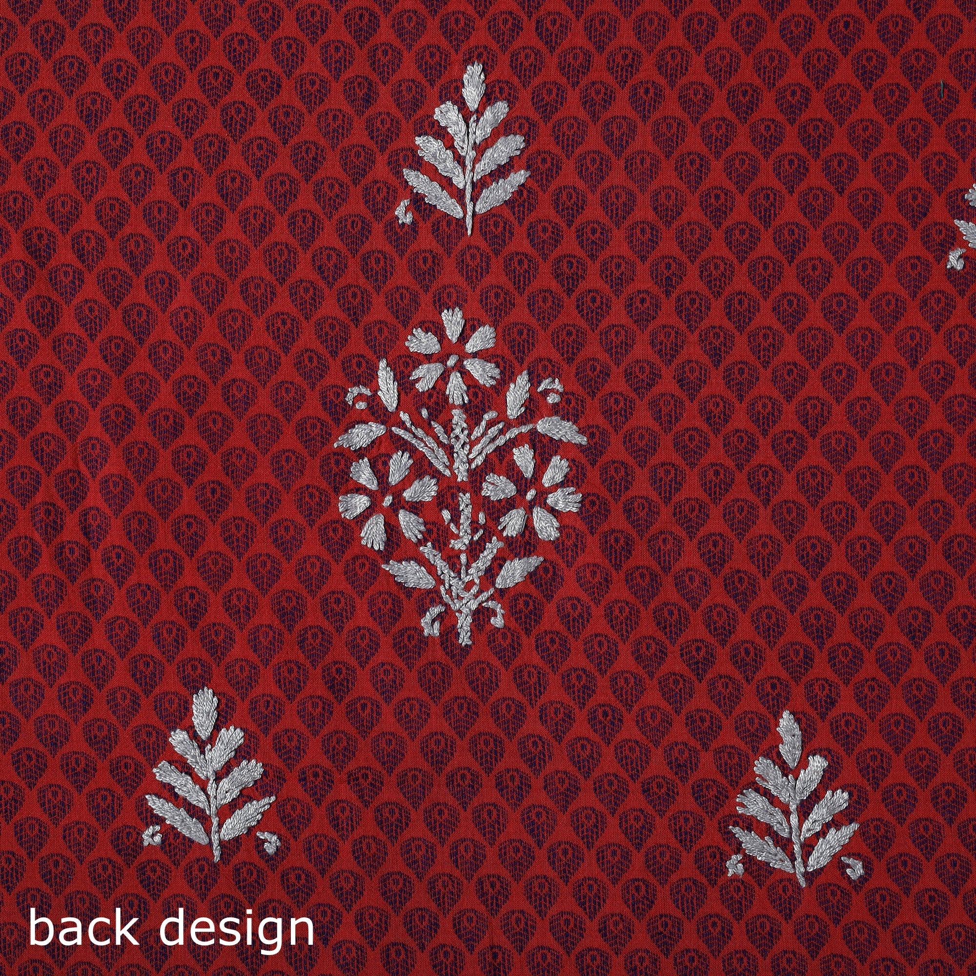 Red - Lucknowi Chikankari Work Jacquard Unstitched Kurta Material (2.5M) 11