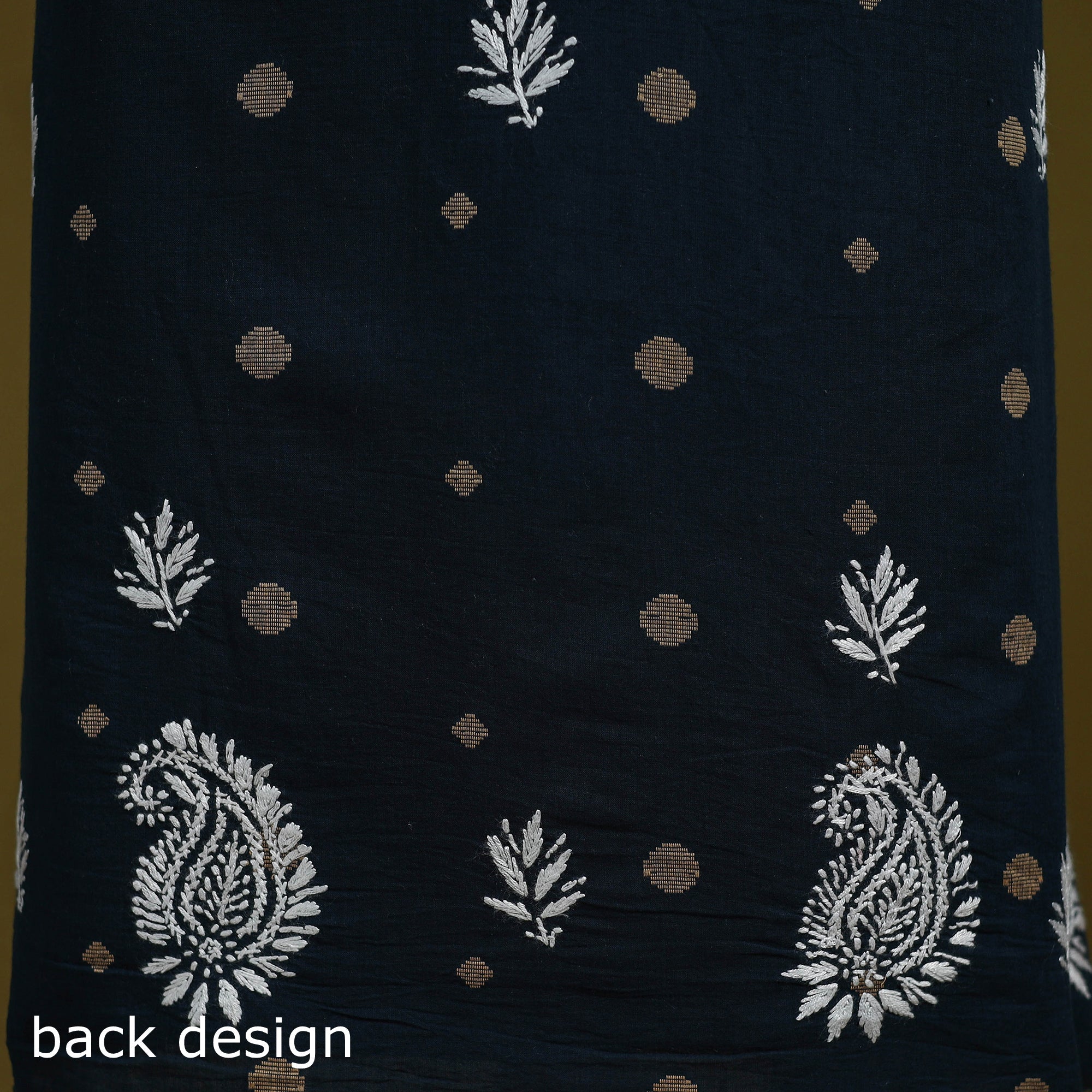 This black lucknowi chikankari cotton jacquard unstitched kurta material brings together the refined charm of Chikankari hand embroidery and the rich texture of jacquard weaving. The delicate needlework from Lucknow blends beautifully with the woven patterns, giving the fabric a graceful and sophisticated appeal. Ideal for festive occasions or elevated everyday wear, it can be tailored to your preferred style.