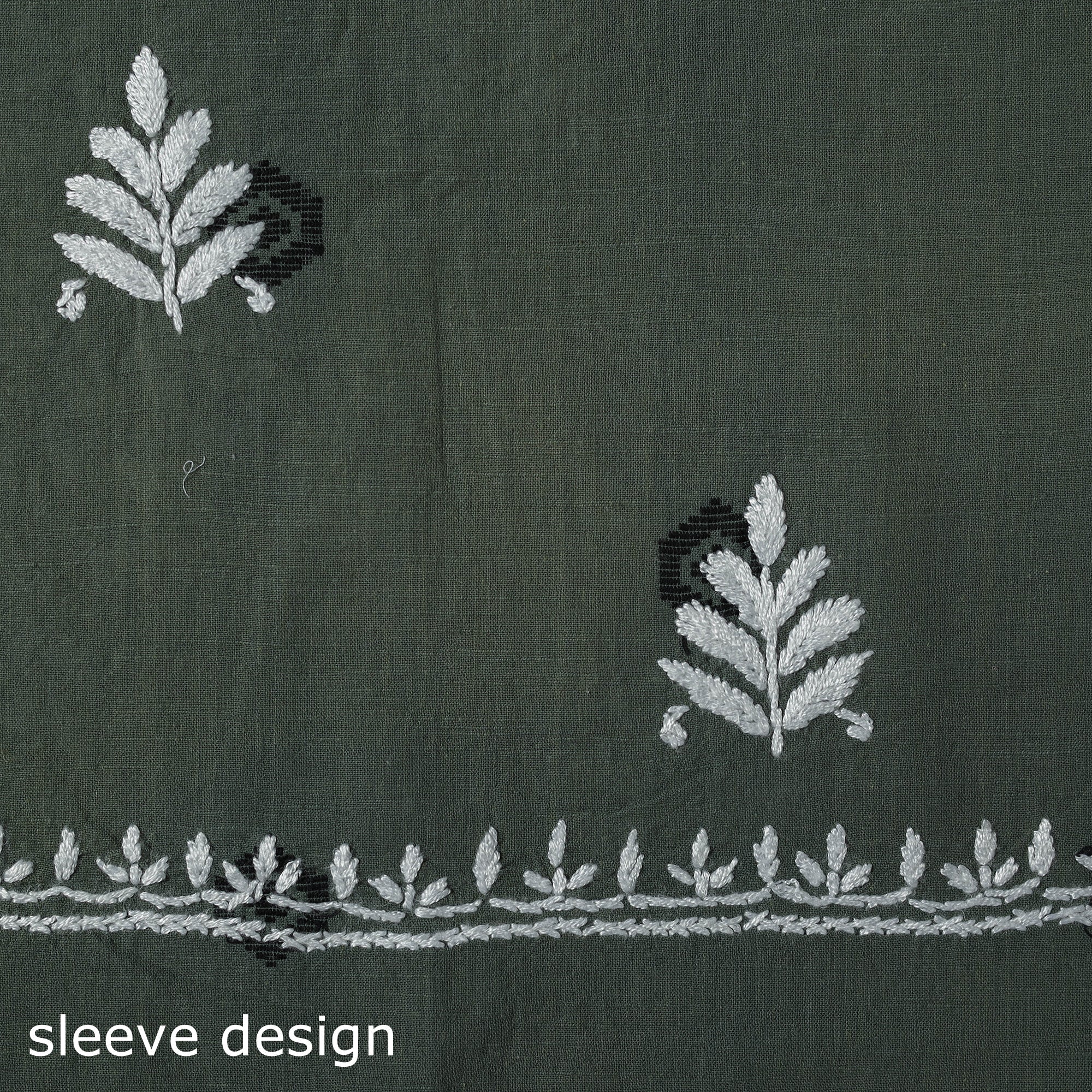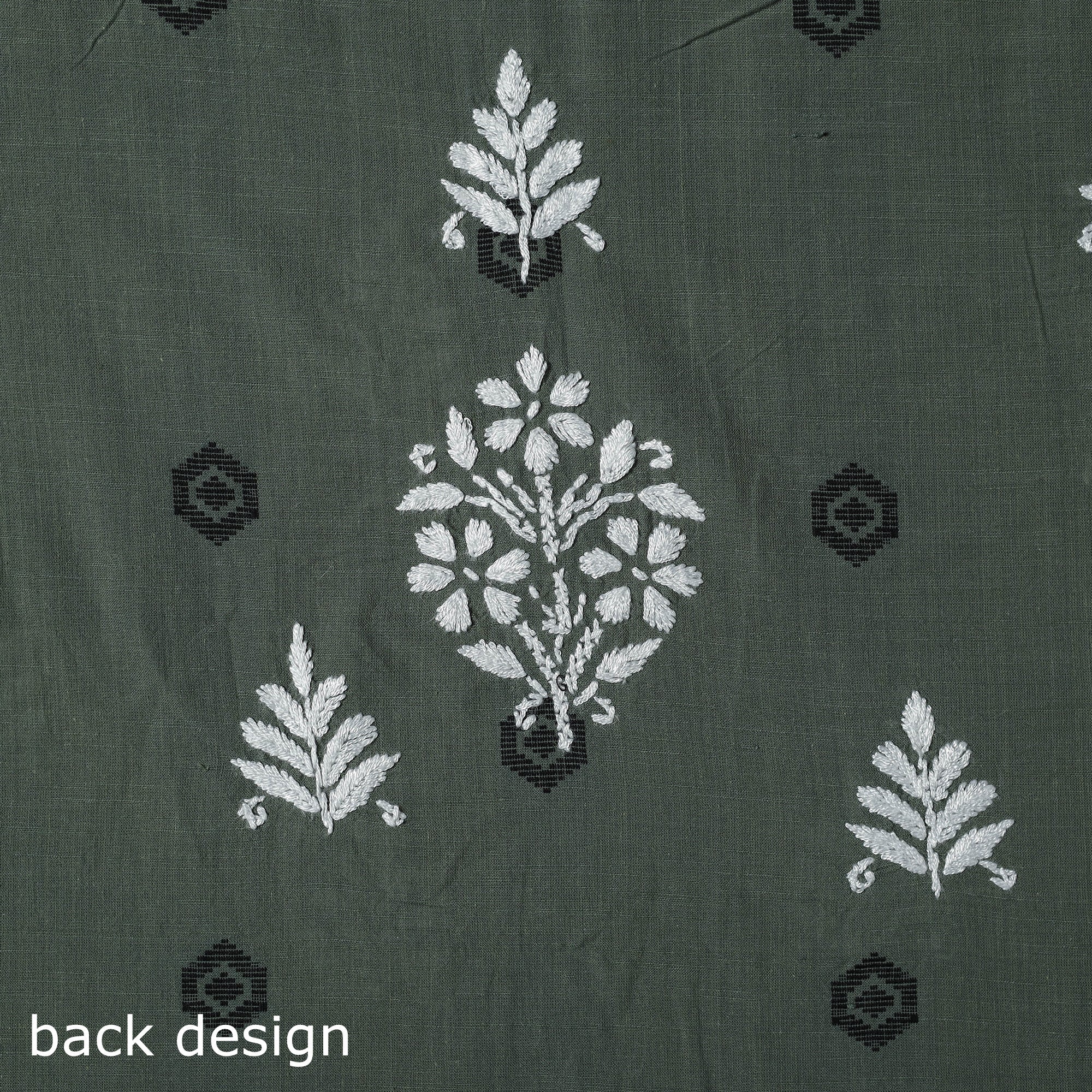 This grey lucknowi chikankari cotton jacquard unstitched kurta material brings together the refined charm of Chikankari hand embroidery and the rich texture of jacquard weaving. The delicate needlework from Lucknow blends beautifully with the woven patterns, giving the fabric a graceful and sophisticated appeal. Ideal for festive occasions or elevated everyday wear, it can be tailored to your preferred style.