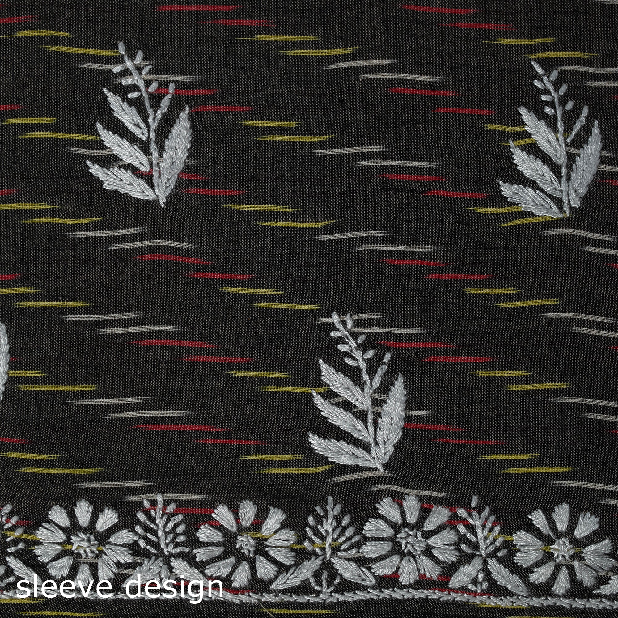 Black - Lucknowi Chikankari Work Pochampally Ikat Unstitched Kurta Material (2.5M) 79