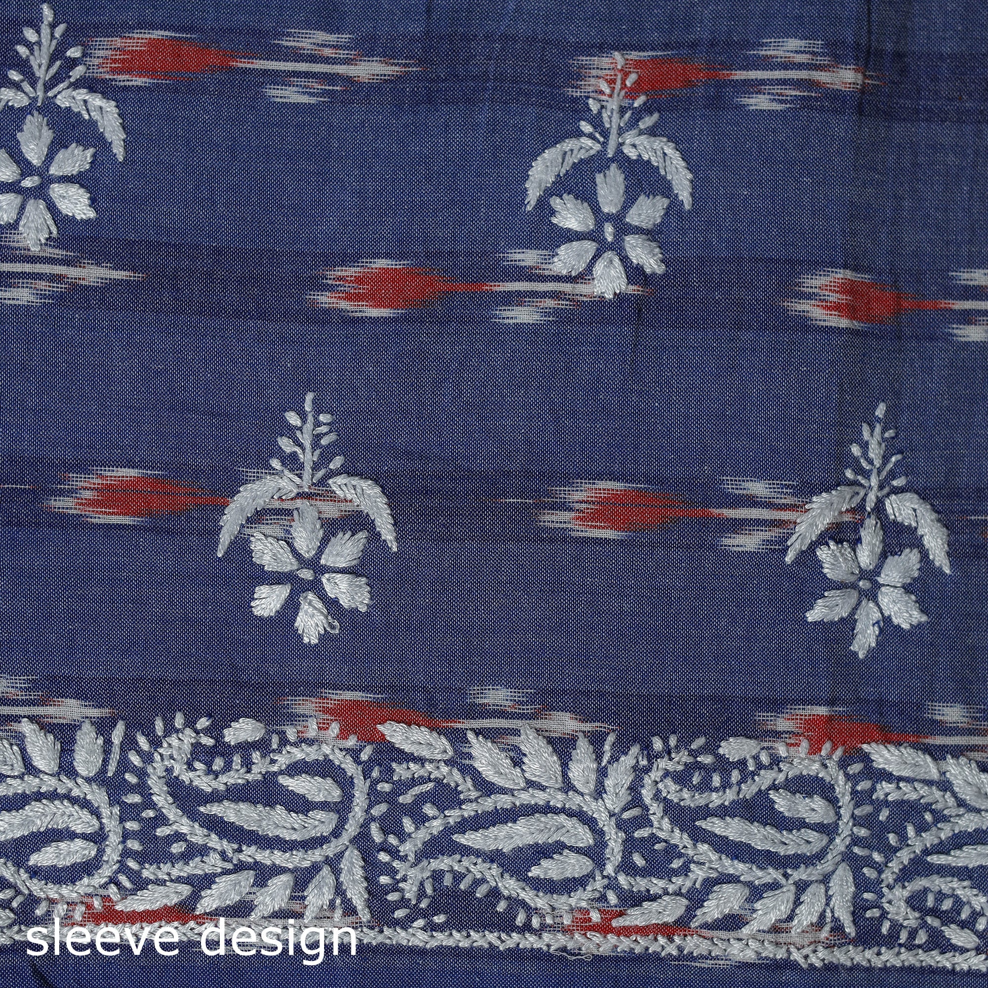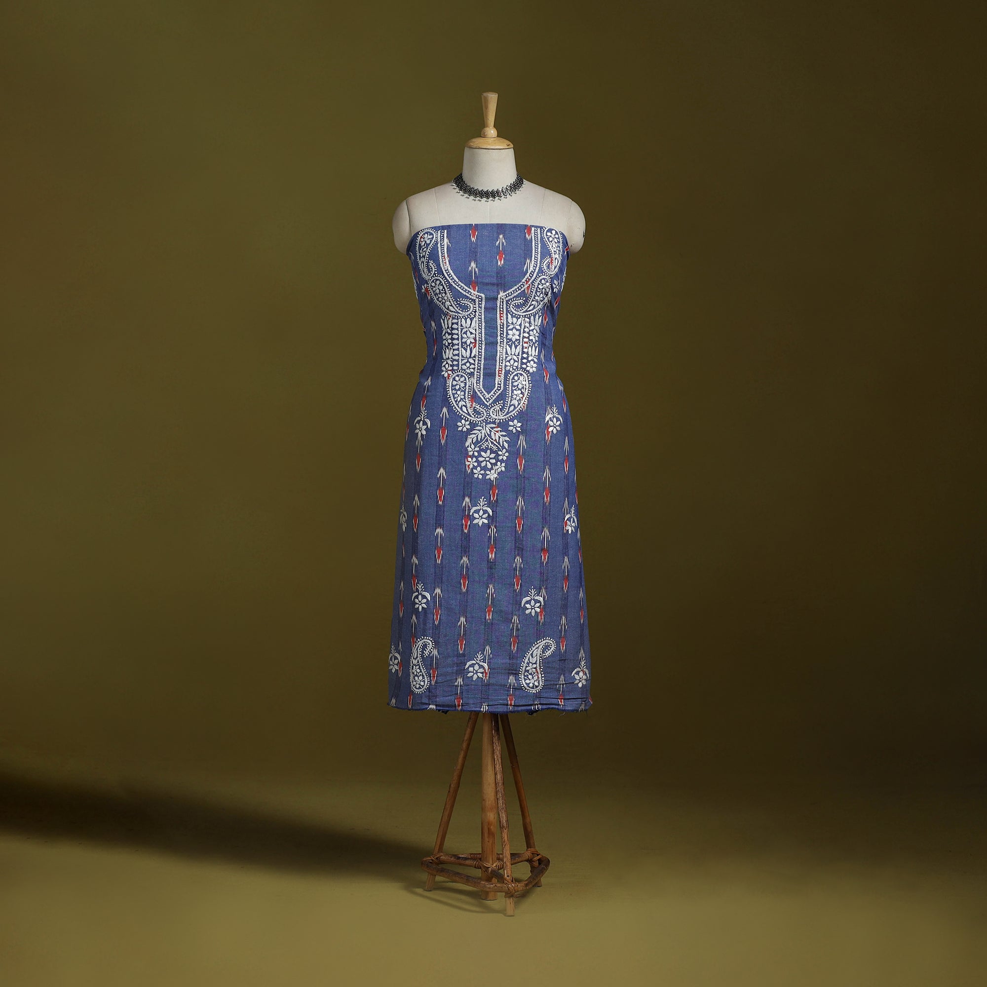 • Lucknowi chikankari work pochampally ikat unstitched kurta