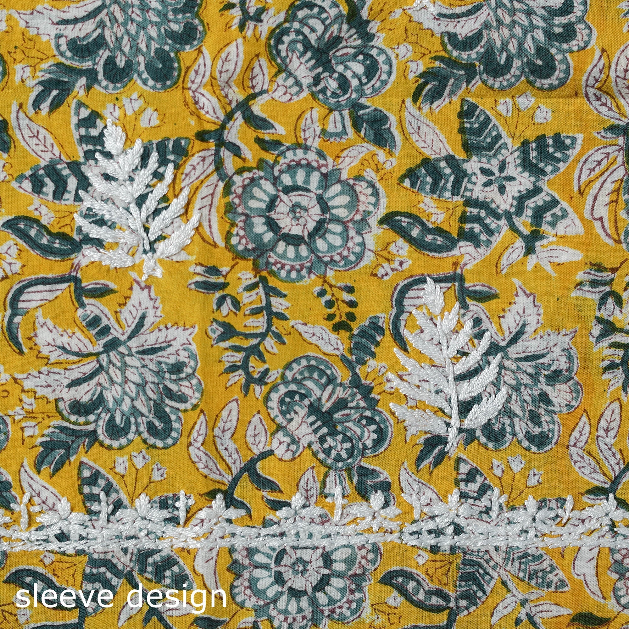 Yellow - Lucknowi Chikankari Work Sanganeri Unstitched Kurta Material (2.5M) 32