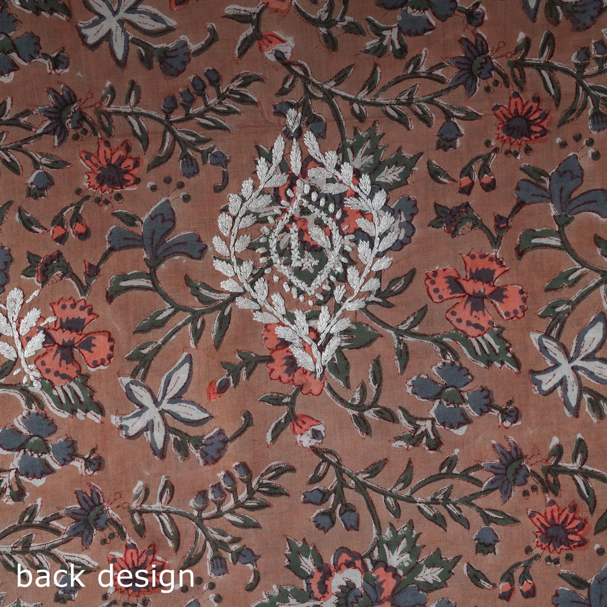 Brown - Lucknowi Chikankari Work Sanganeri Unstitched Kurta Material (2.5M) 49