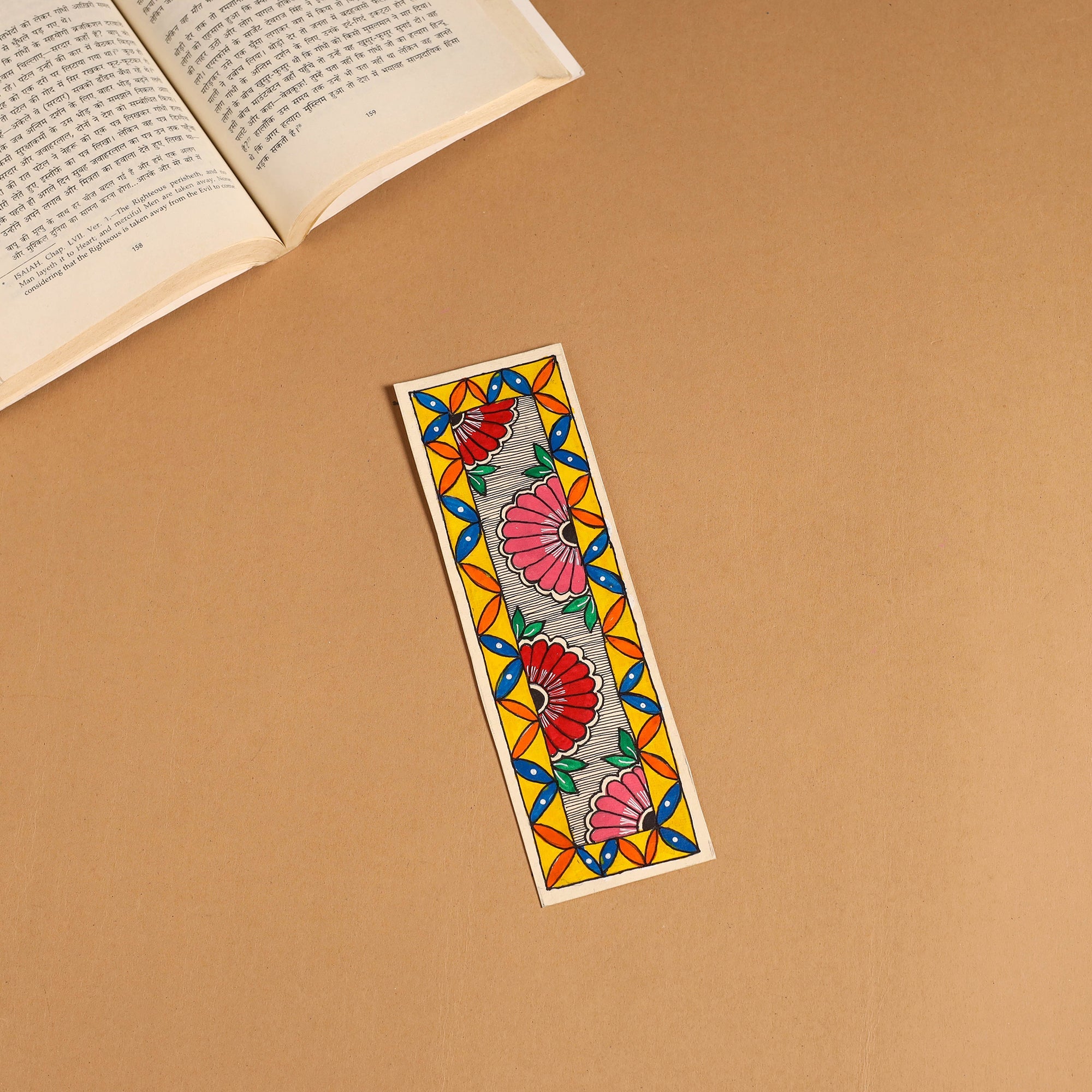 This madhubani hand-painted bookmark is crafted on handmade paper and painted with natural dyes. Created by master artisan Hira Devi from Bihar, it represents the world-famous Madhubani art, admired for its fine detailing, vibrant motifs, and storytelling rooted in nature and mythology. A perfect companion for your books, this bookmark brings tradition to your reading and makes a thoughtful keepsake for art lovers and book enthusiasts.