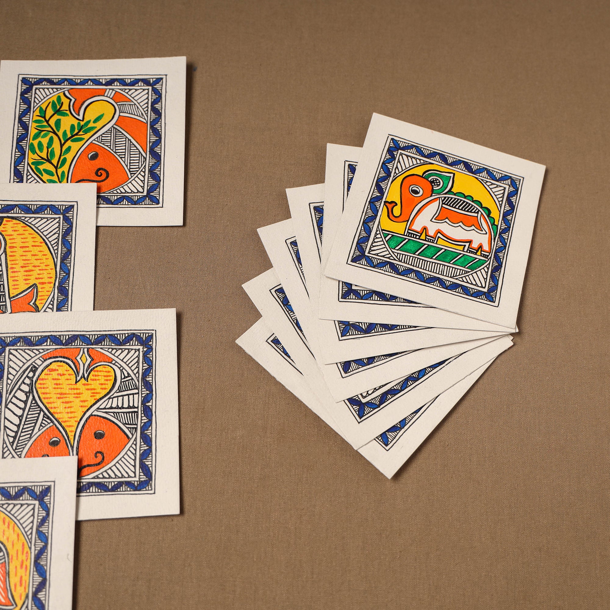 • Multicolor - Madhubani Handpainted Wall Decor Cards (Set of 10) 06