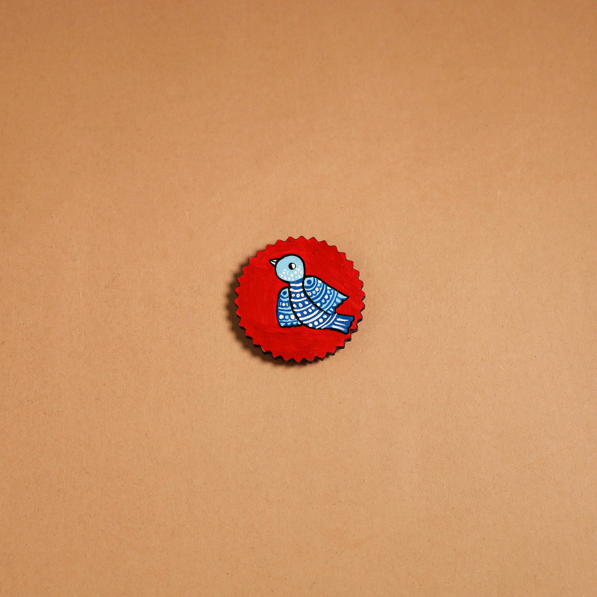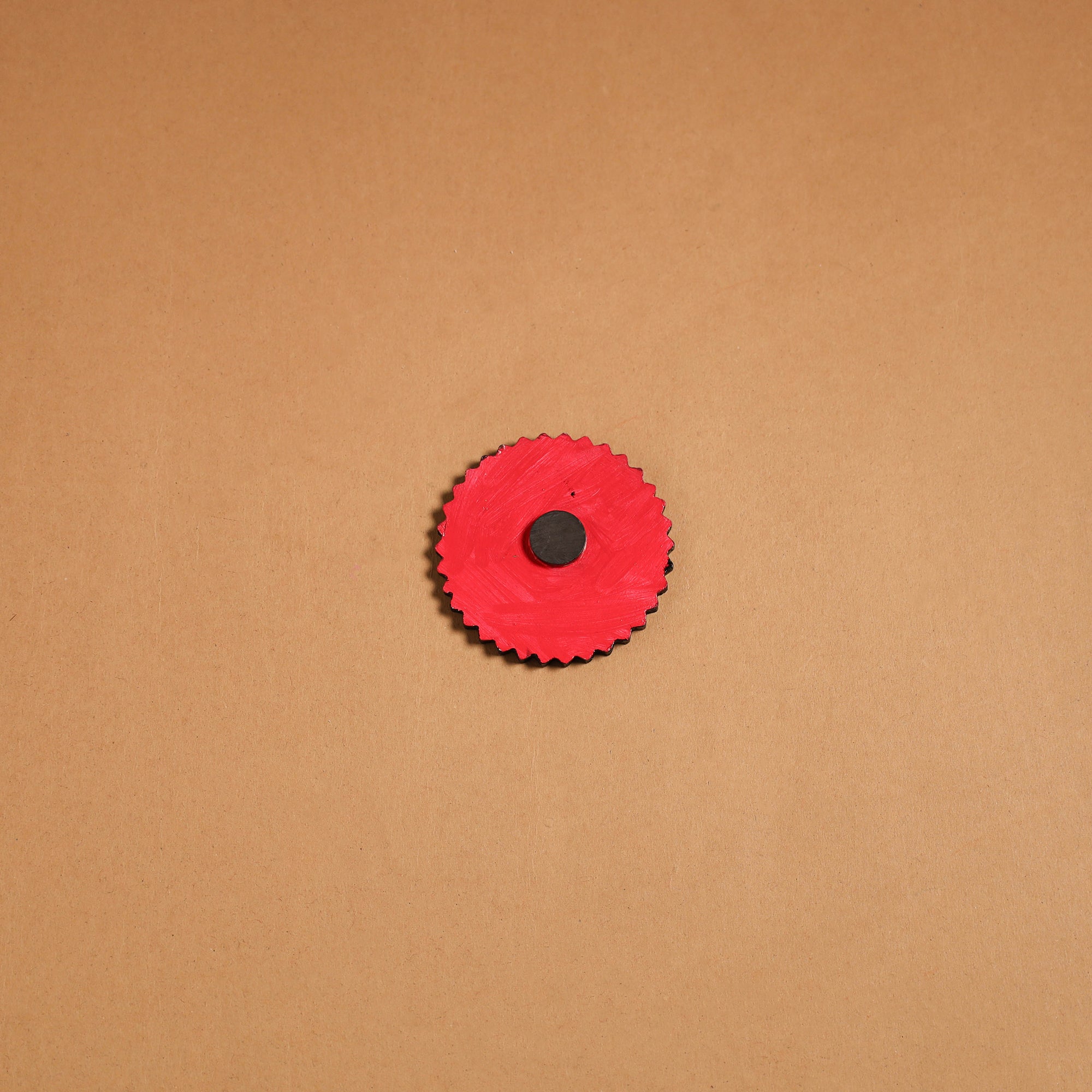 Red handpainted fridge magnet is crafted on MDF wood using acrylic colors. It showcases the renowned madhubani art, known for its fine lines, vibrant motifs and storytelling inspired by nature and mythology. This magnet adds a touch of art and charm to your home decor.
