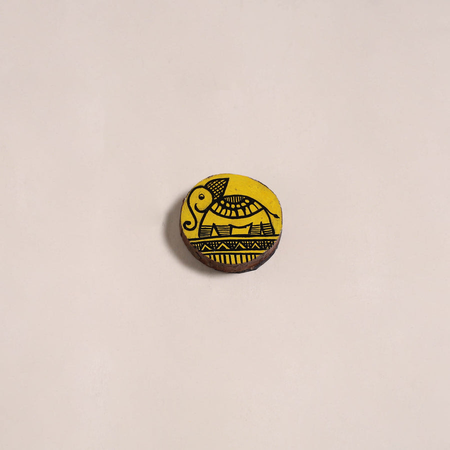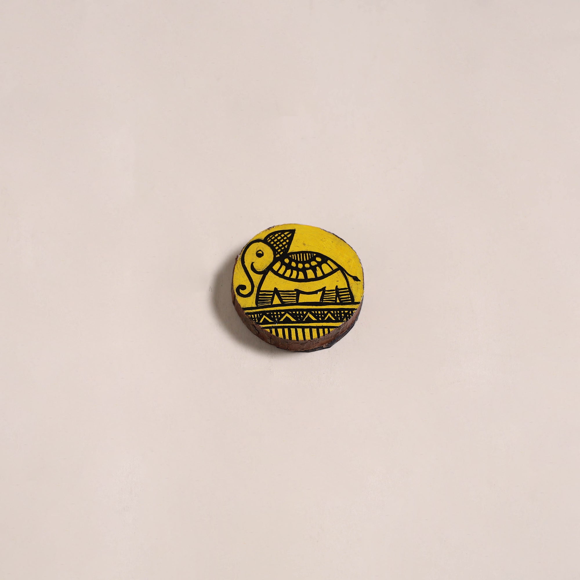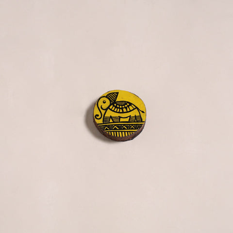 • Yellow - Madhubani Handpainted Wooden Fridge Magnet 26