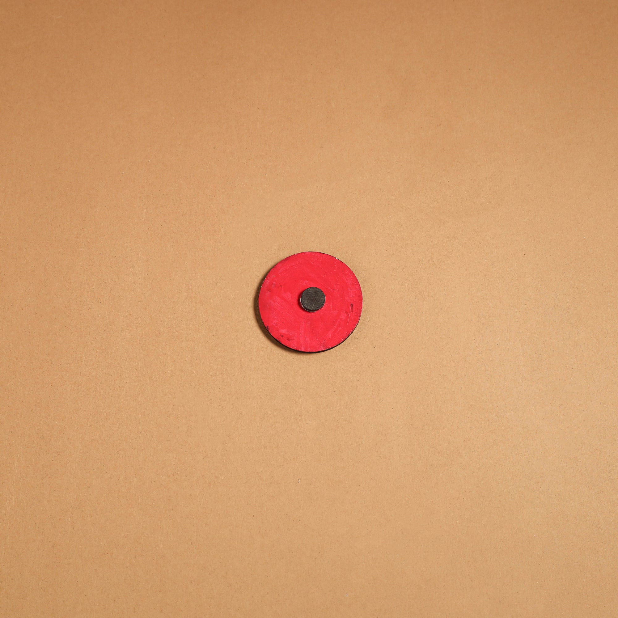 Orange handpainted fridge magnet is crafted on MDF wood using acrylic colors. It showcases the renowned madhubani art, known for its fine lines, vibrant motifs and storytelling inspired by nature and mythology. This magnet adds a touch of art and charm to your home decor.
