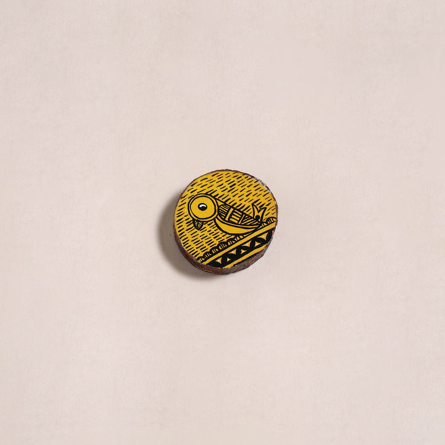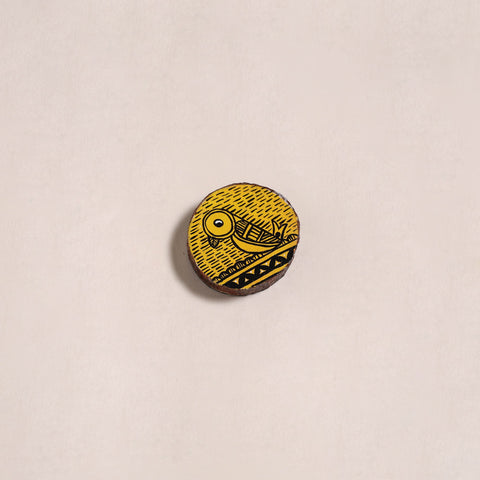 • Yellow - Madhubani Handpainted Wooden Fridge Magnet 33