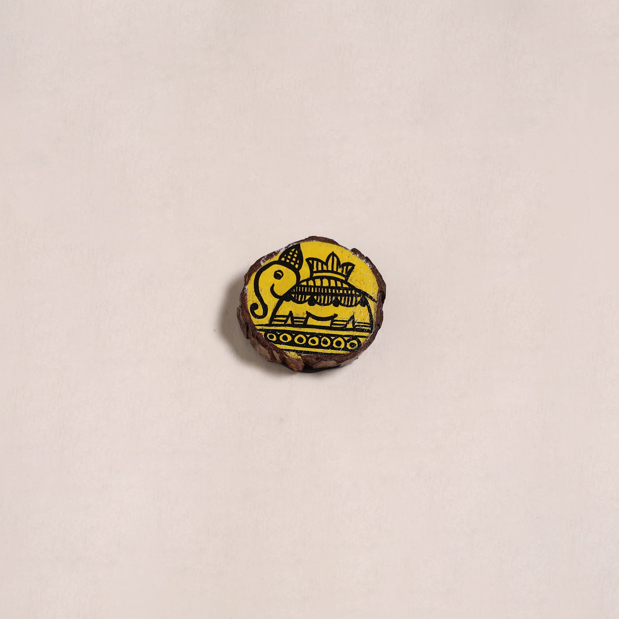 • Madhubani handpainted wooden fridge magnet 34 - handcrafted
