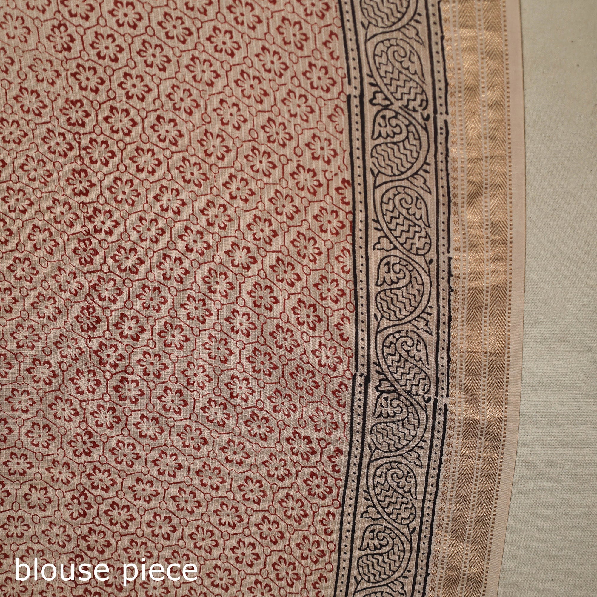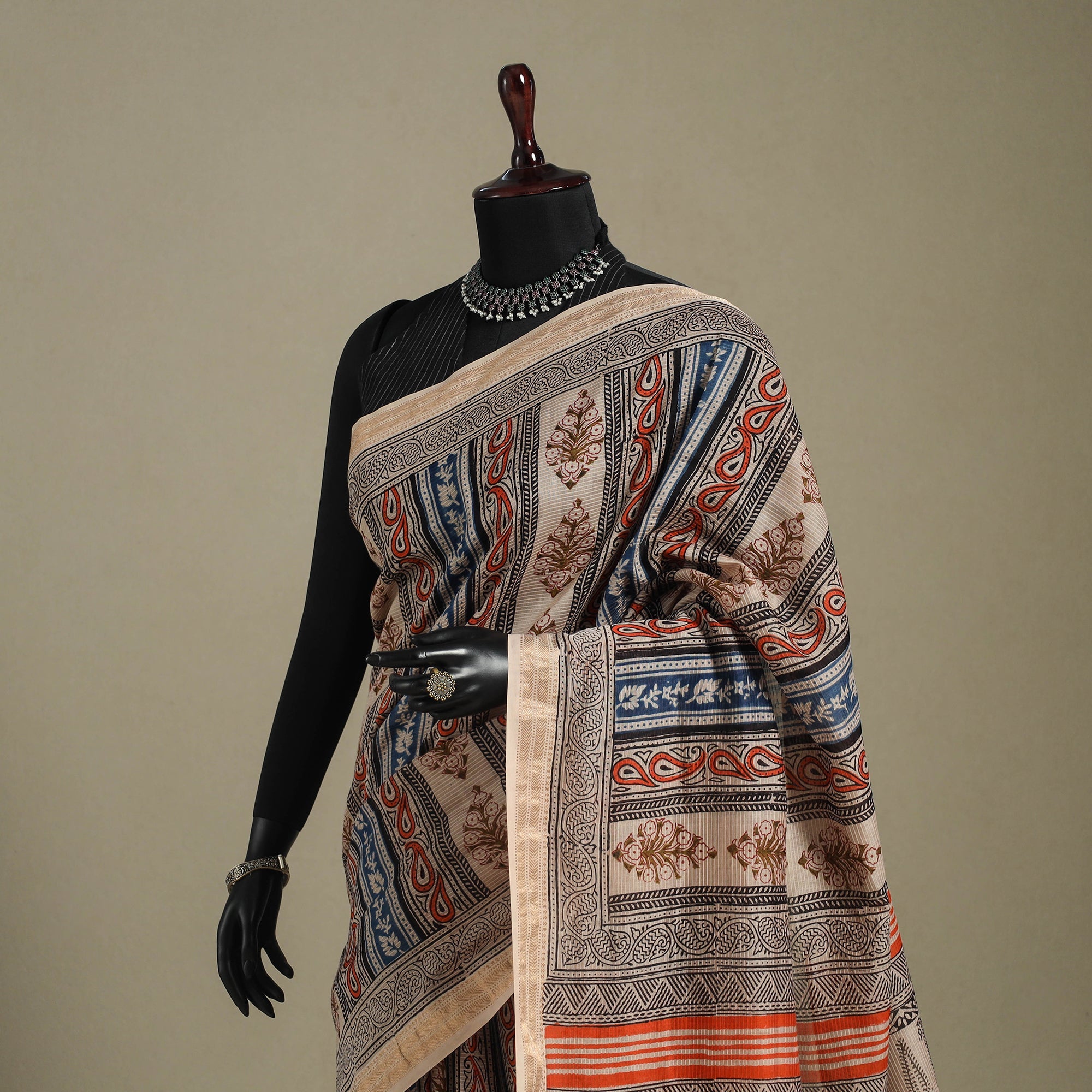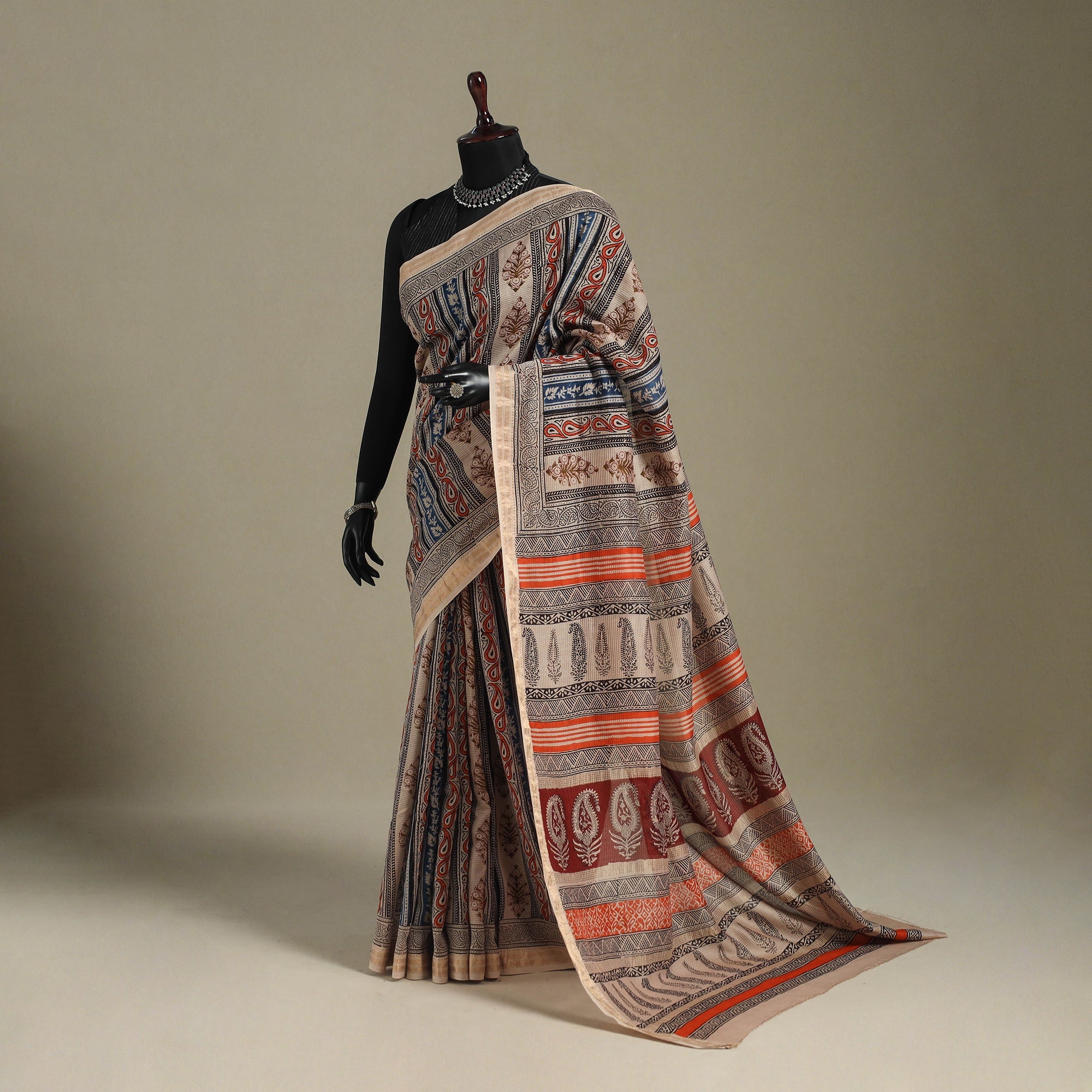 This beige bagh maheshwari silk cotton saree with zari border comes from Madhya Pradesh. It is hand block-printed with detailed patterns and dyed in rich azo-free colours. Light and easy to wear, it carries the charm of traditional Indian weaving with a modern touch. Suitable for festivals, daily wear, or gifting, this saree adds grace and cultural value to any wardrobe, making it a meaningful and stylish choice.
