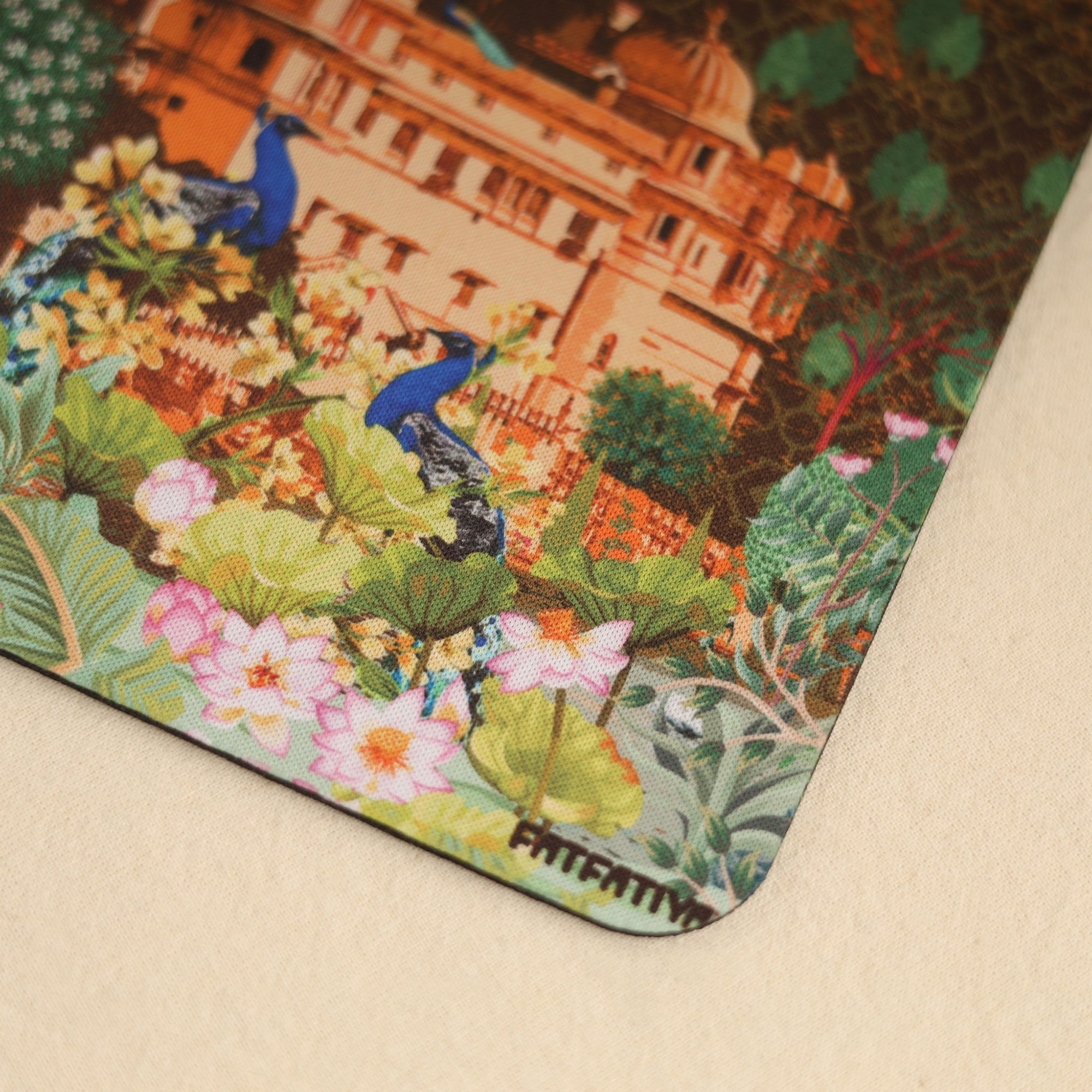 Add a vibrant touch to your desk with this uniquely printed mouse pad by Fatfatiya, crafted in Rajasthan. It features a non-slip rubber base and a soft microfibre surface adorned with designs inspired by Rajasthani heritage. Ideal for office tasks, gaming, or