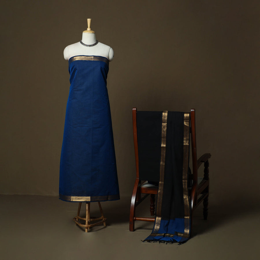 Mangalagiri 3pc unstitched dress material set originates from Andhra Pradesh, known for its traditional mangalagiri weaving. This cotton fabric is valued for its fine texture and durability. The set includes kurta fabric paired with a matching plain bottom and a missing checks dupatta. Comfortable to wear and easy to style, this unstitched set is suitable for occasions, cultural gatherings or everyday wear.