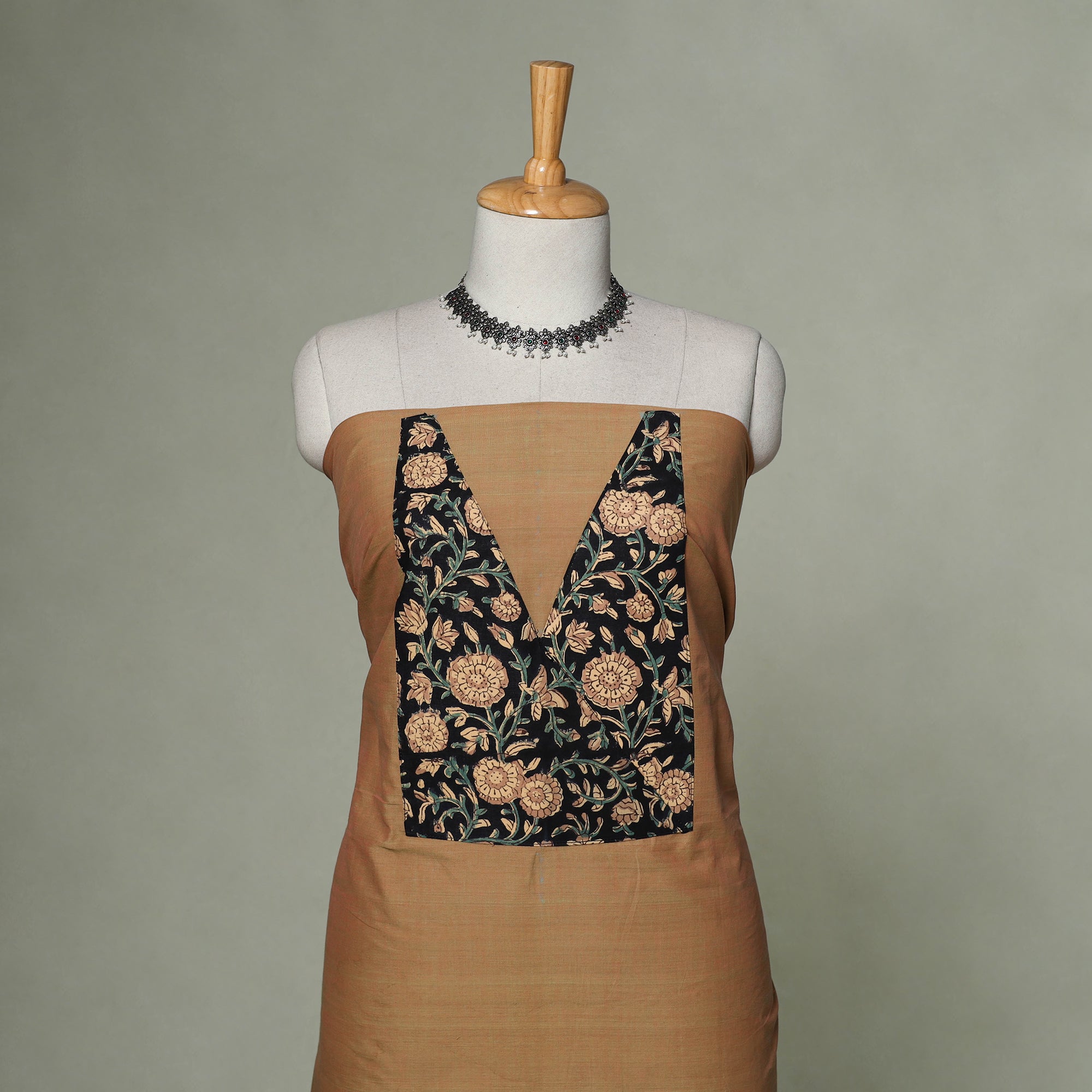 | Material | Brown mangalagiri handloom cotton unstitched kurta material is soft, breathable and ideal for everyday comfort. This weaving tradition has been practiced for over 500 years. Woven on traditional pit looms, the cotton fabric is known for its fine texture, durability, and clean finish. The fabric is enhanced with a subtle zari border, adding an elegant highlight to the overall look. A neatly handcrafted patchwork detail on the front neckline further refines the design. It is suitable for stitching daily wear kurtas, office ready outfits or relaxed casual styles. |