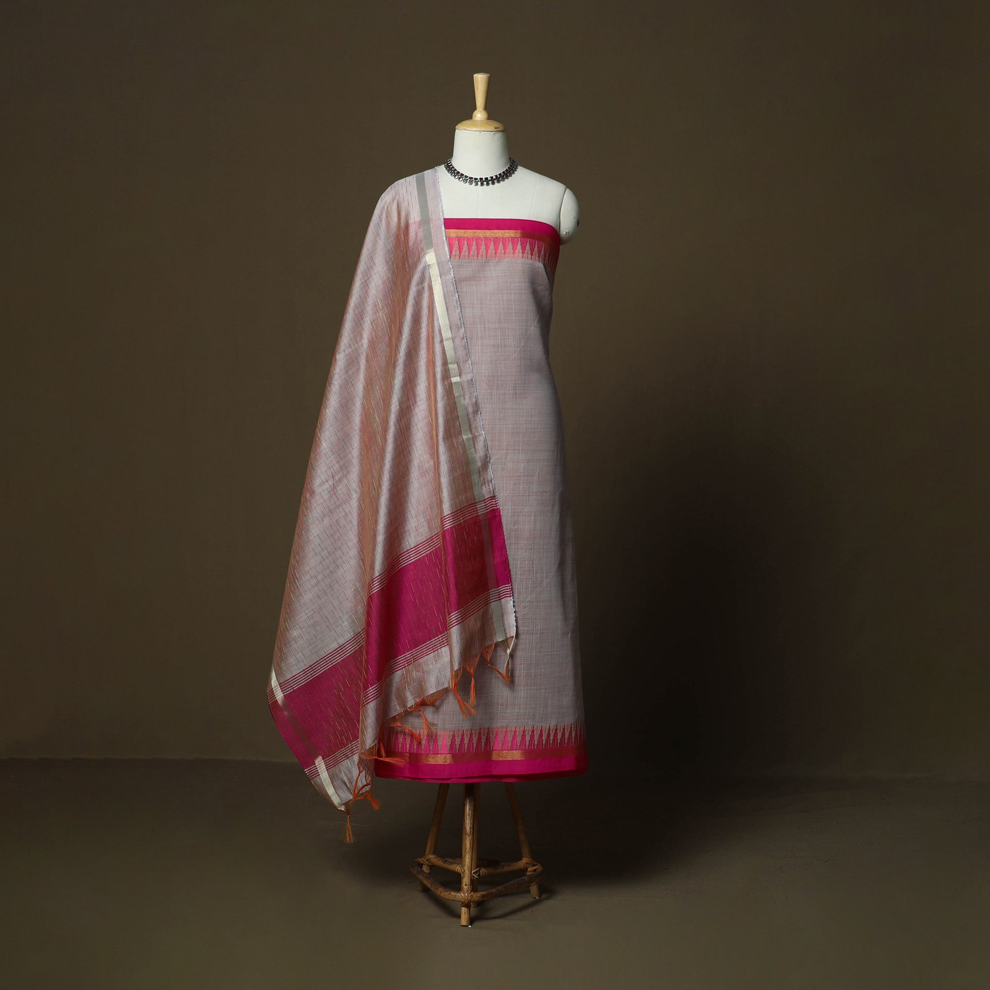 • Mangalagiri silk cotton 3pc unstitched dress material