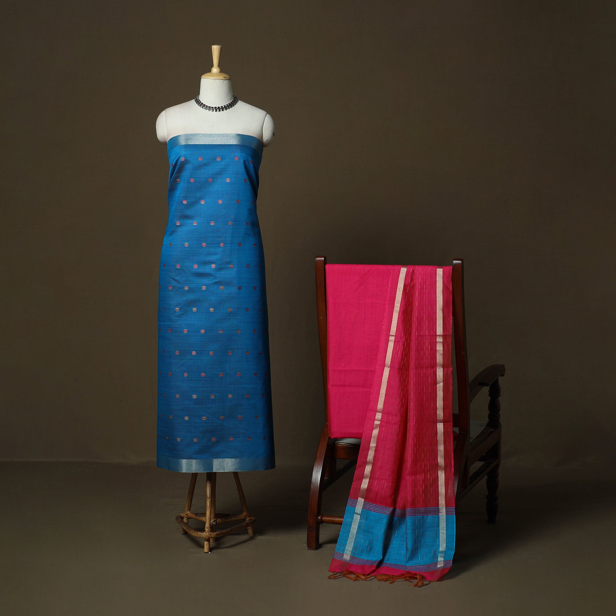 • Mangalagiri silk cotton 3pc unstitched dress material