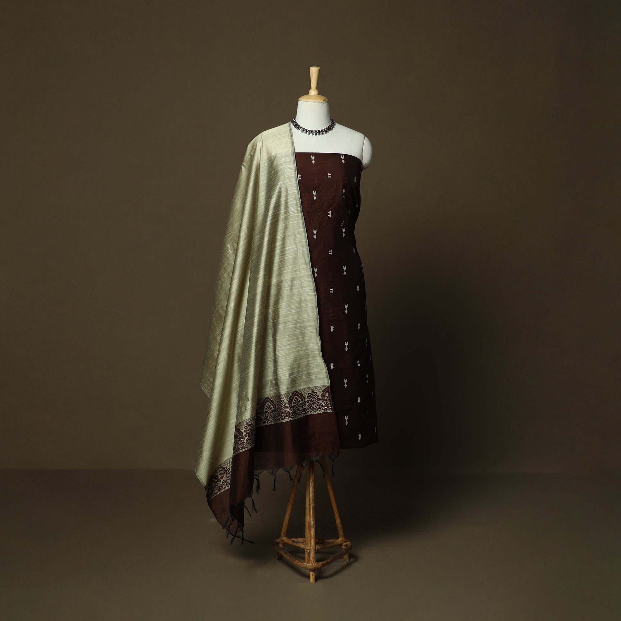 Mangalagiri art silk cotton thread work 3pc unstitched dress material. This fabric is valued for its fine texture and durability. The set includes kurta fabric paired with a matching plain bottom and a dupatta. Comfortable to wear and easy to style, this unstitched set is suitable for occasions, cultural gatherings or everyday wear.