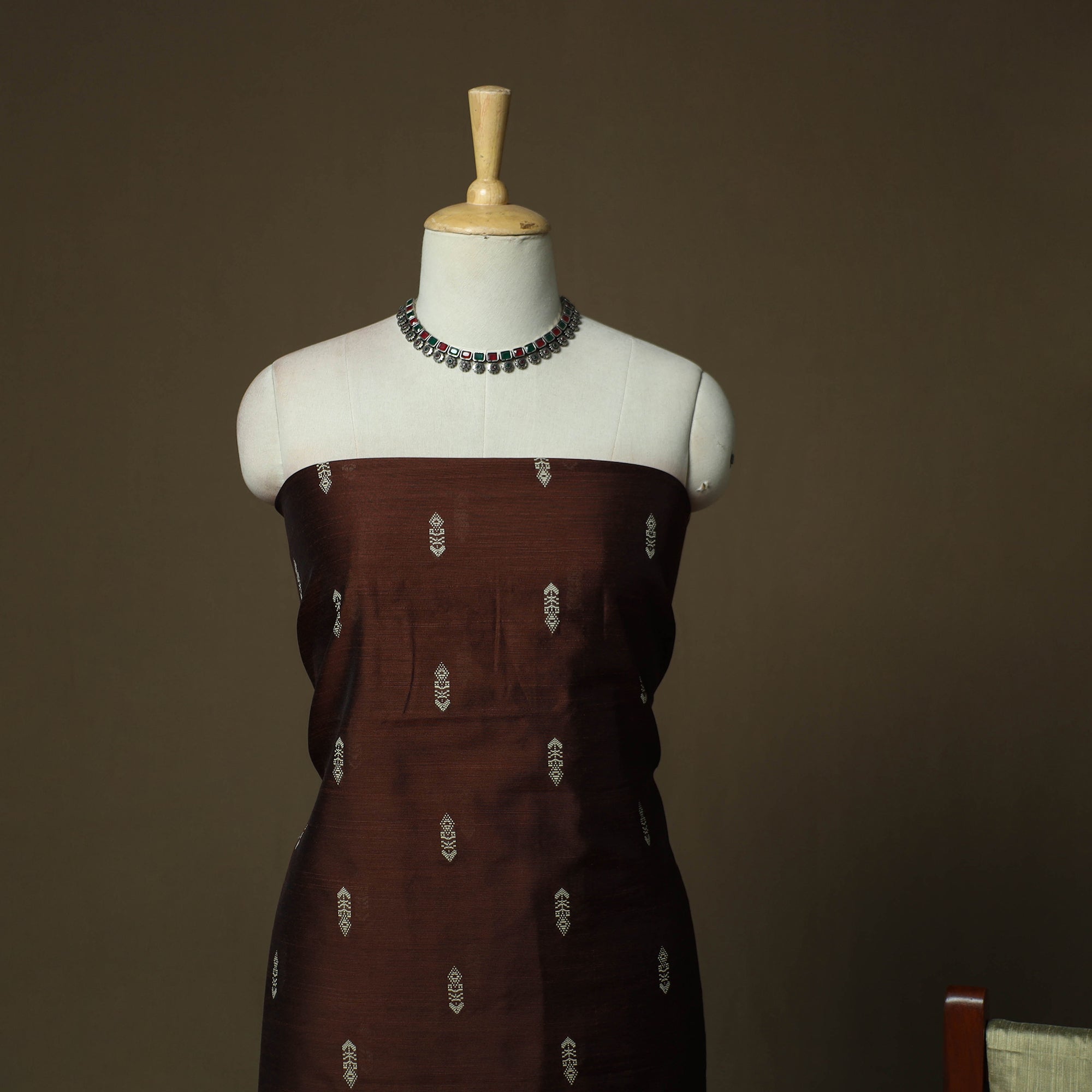 Mangalagiri art silk cotton thread work 3pc unstitched dress material. This fabric is valued for its fine texture and durability. The set includes kurta fabric paired with a matching plain bottom and a dupatta. Comfortable to wear and easy to style, this unstitched set is suitable for occasions, cultural gatherings or everyday wear.