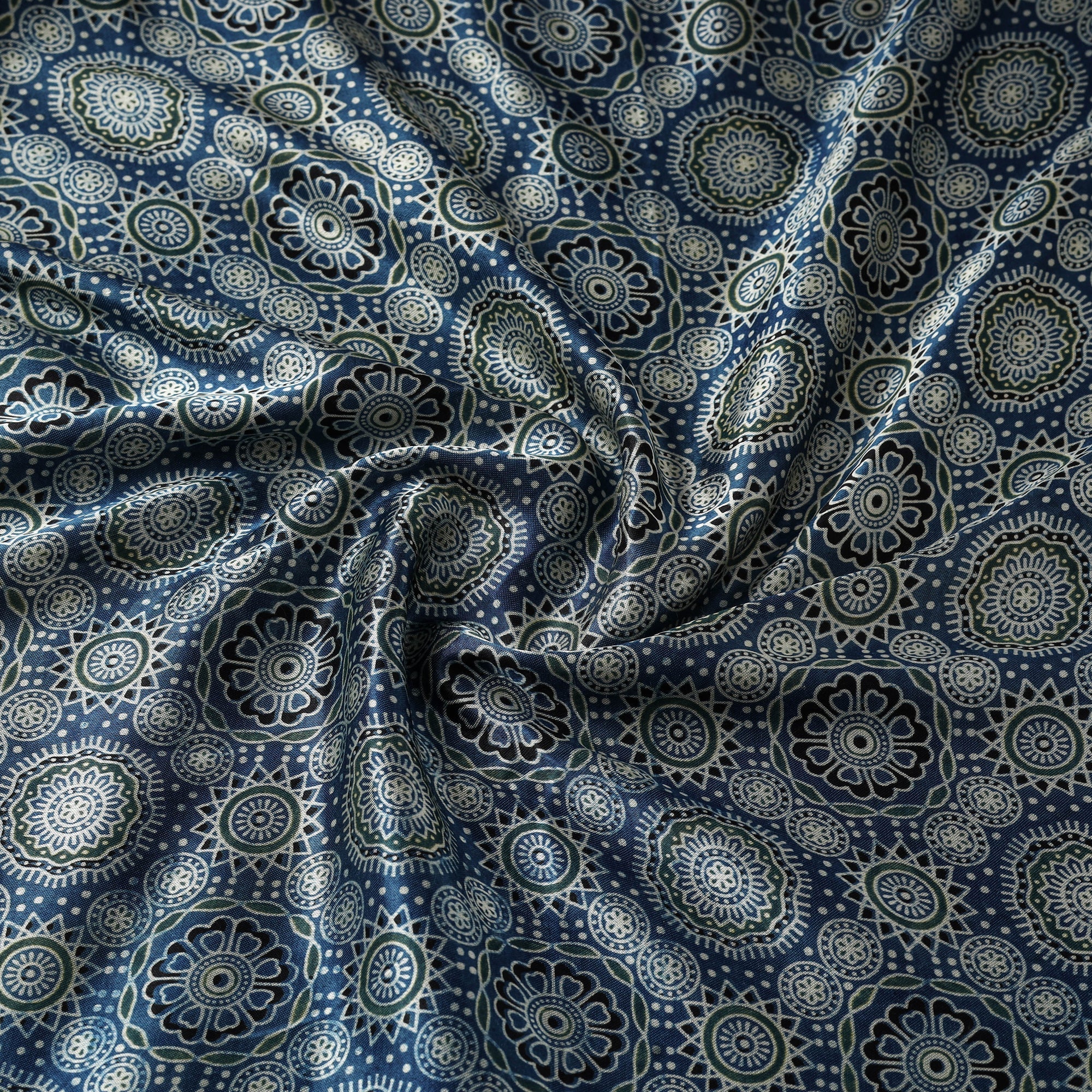 • Blue - Mashru Silk Natural Dyed Block Print Ajrakh Fabric 05