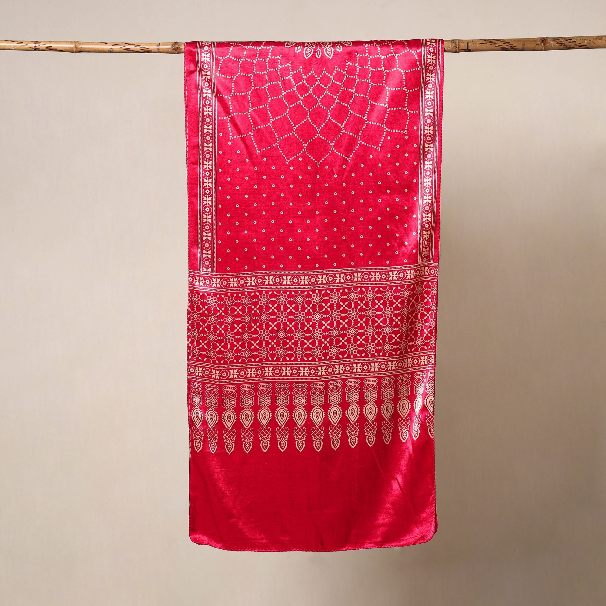 Pink - Mashru Silk Printed Ajrakh Stole 28