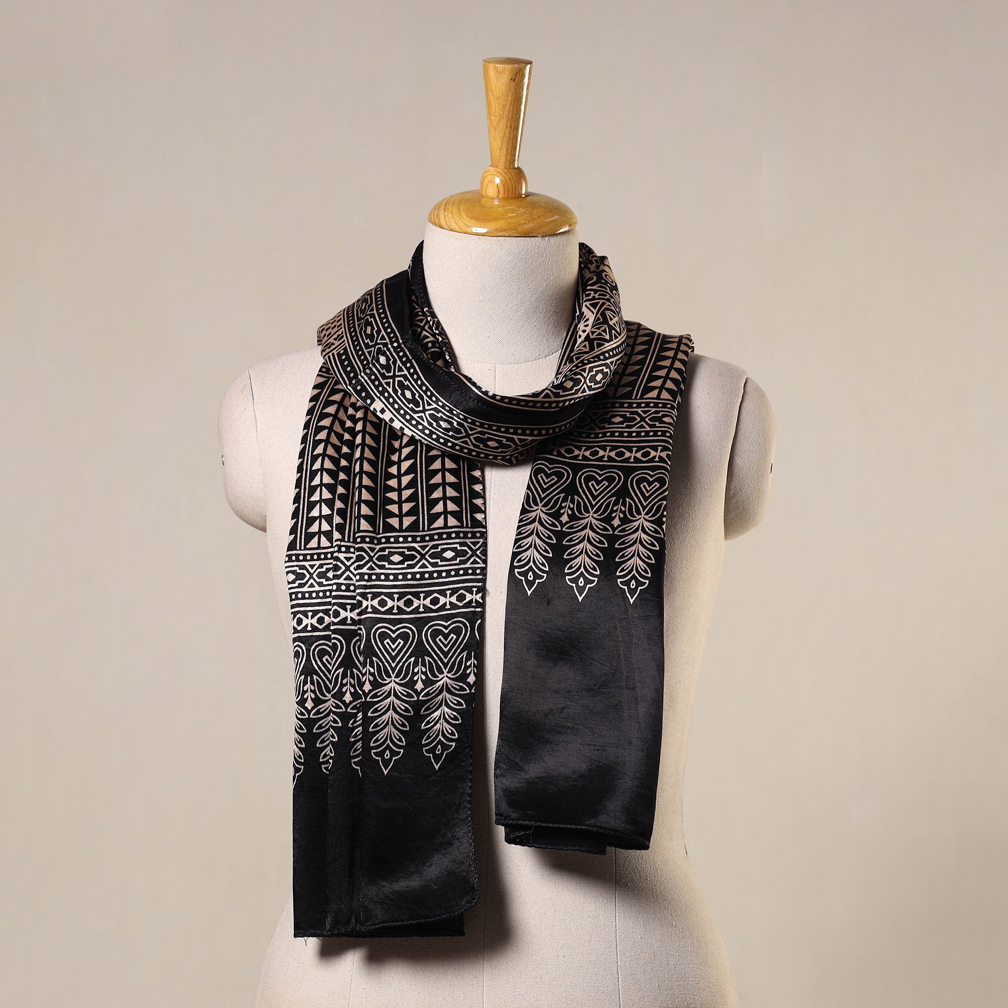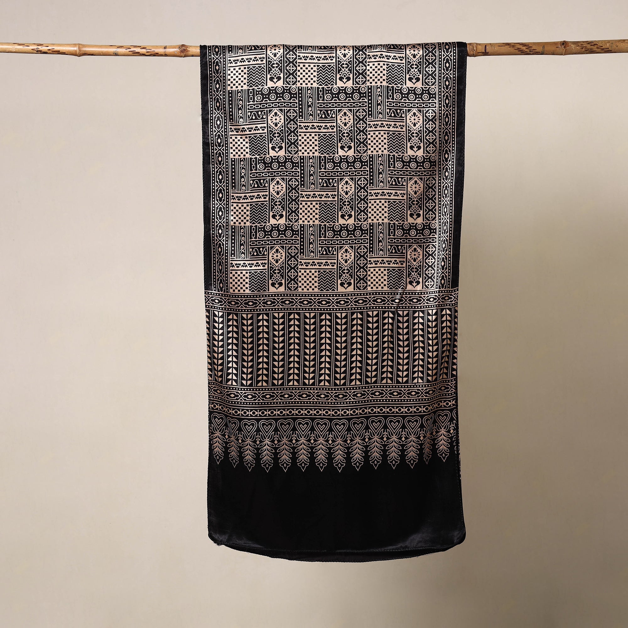 • Black - mashru silk printed stole 51 - handcrafted
