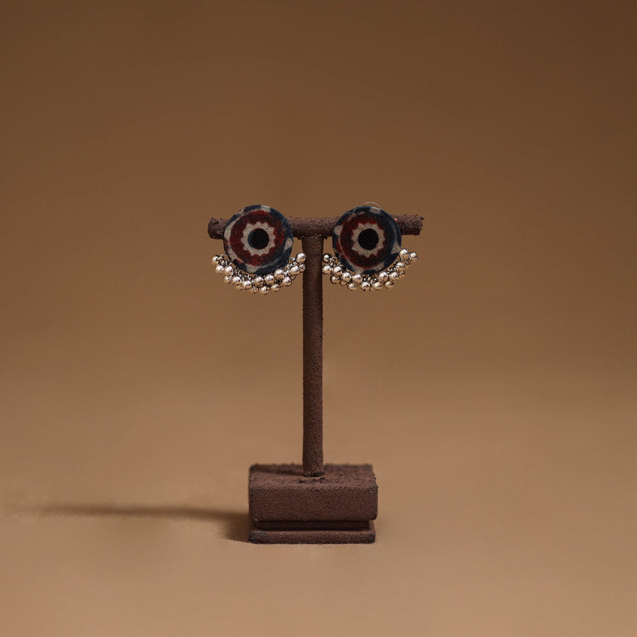 Handmade fabric earrings with ghungroo detailing enhances their charm. Perfect for everyday wear or special occasions, these earrings blend traditional style with a graceful touch.