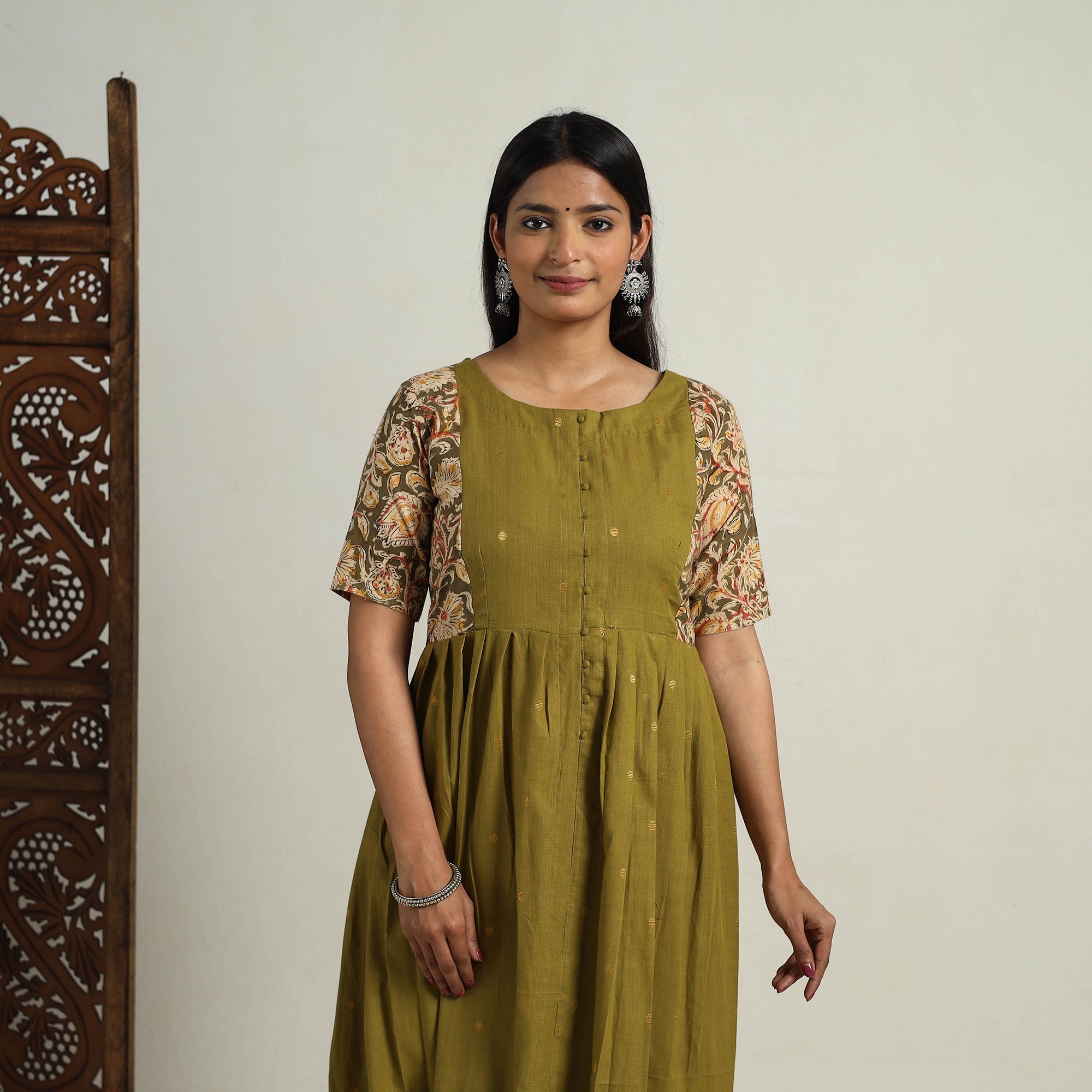 The mehfil mosaic cotton flared olive green jacquard kurta is a blend of elegance and comfort. Featuring intricate patchwork detailing, it adds a touch of charm to your wardrobe. The breathable cotton fabric ensures all-day comfort. Ideal for casual outings and festive occasions, this kurta complements both ethnic and contemporary styles.