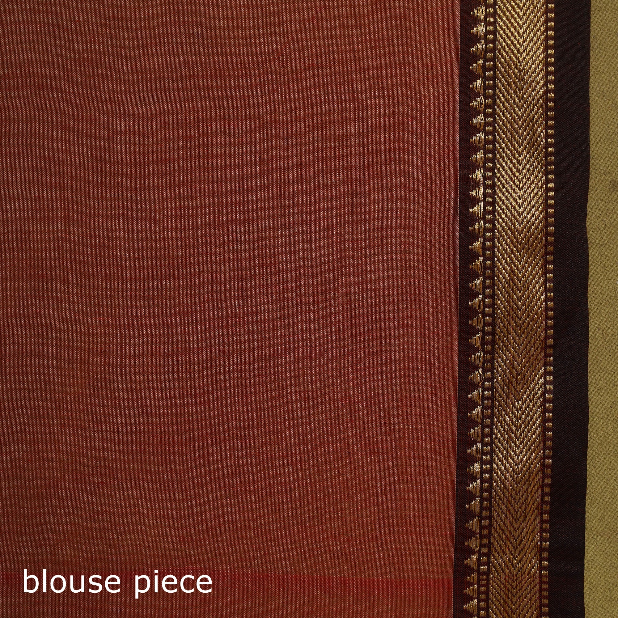 Mercerised cotton dharwad saree from Karnataka is woven using a traditional method known for its texture and intricate thread border work. The border features fine motifs and patterns that reflect the region’s style. These simple yet graceful details make the saree perfect for both formal occasions and everyday wear.