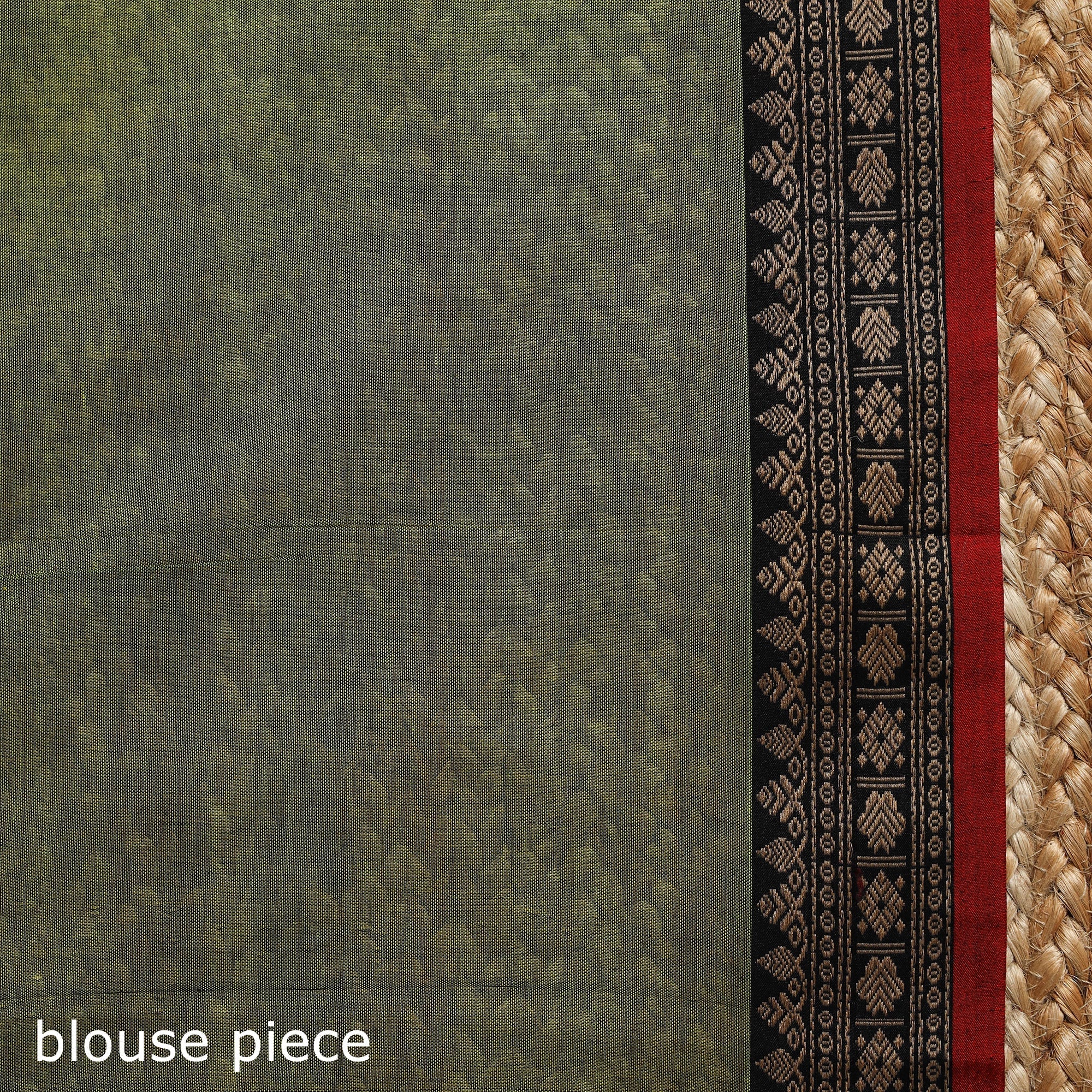Green mercerised cotton dharwad saree from Karnataka is woven using a traditional method known for its texture and intricate thread border work. The border features fine motifs and patterns that reflect the region’s style. These simple yet graceful details make the saree perfect for both formal occasions and festive celebrations.