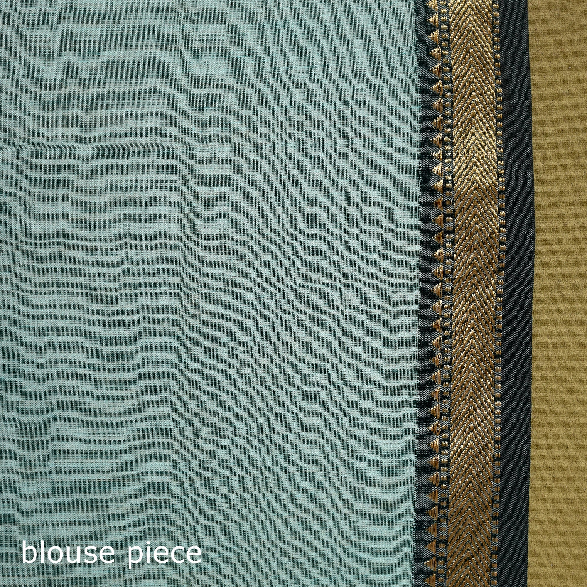 Blue mercerised cotton dharwad saree from Karnataka is woven using a traditional method known for its texture and intricate thread border work. The border features fine motifs and patterns that reflect the region’s style. These simple yet graceful details make the saree perfect for both formal occasions and everyday wear.