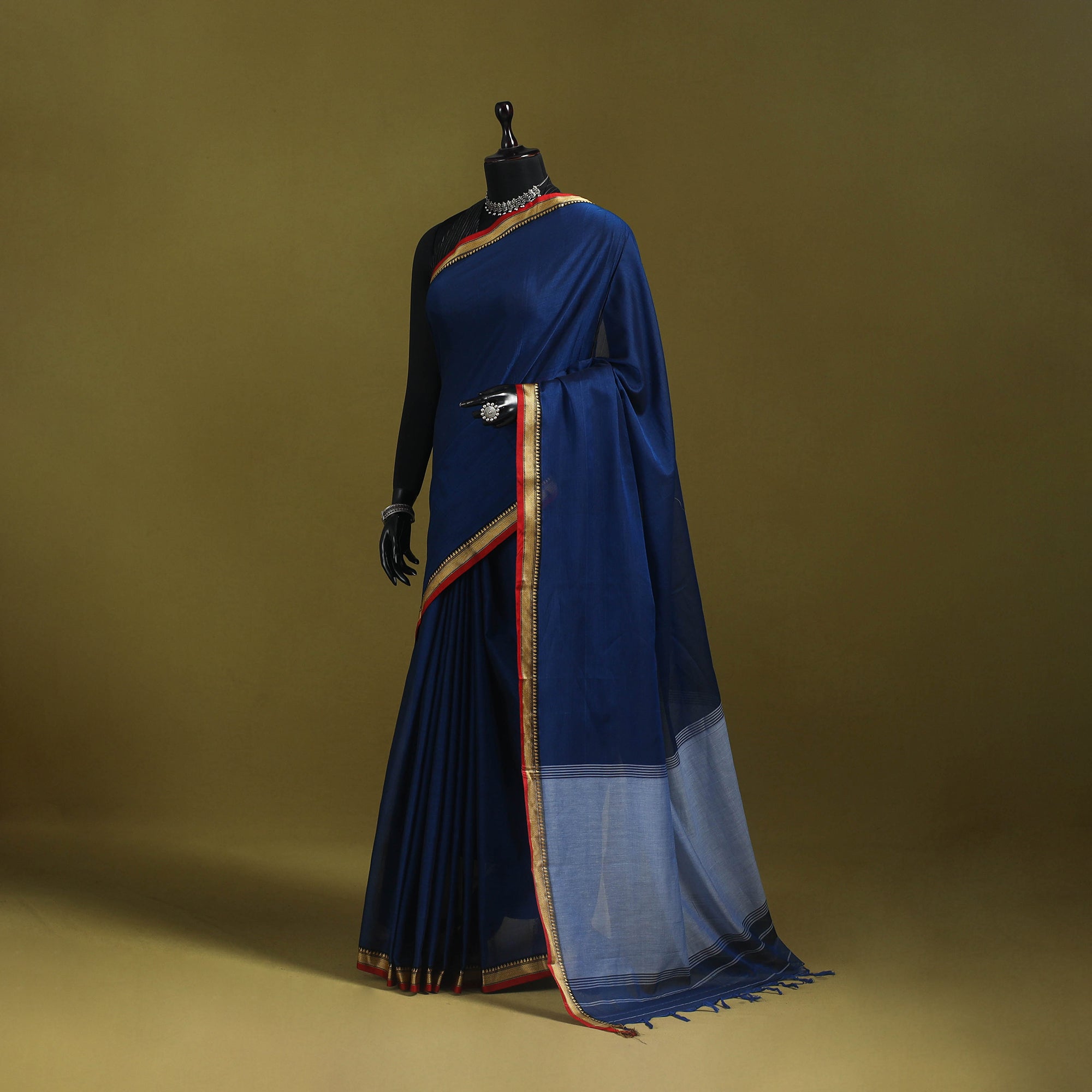 Mercerised cotton dharwad saree from Karnataka is woven using a traditional method known for its texture and intricate thread border work. The border features fine motifs and patterns that reflect the region’s style. These simple yet graceful details make the saree perfect for both formal occasions and everyday wear.
