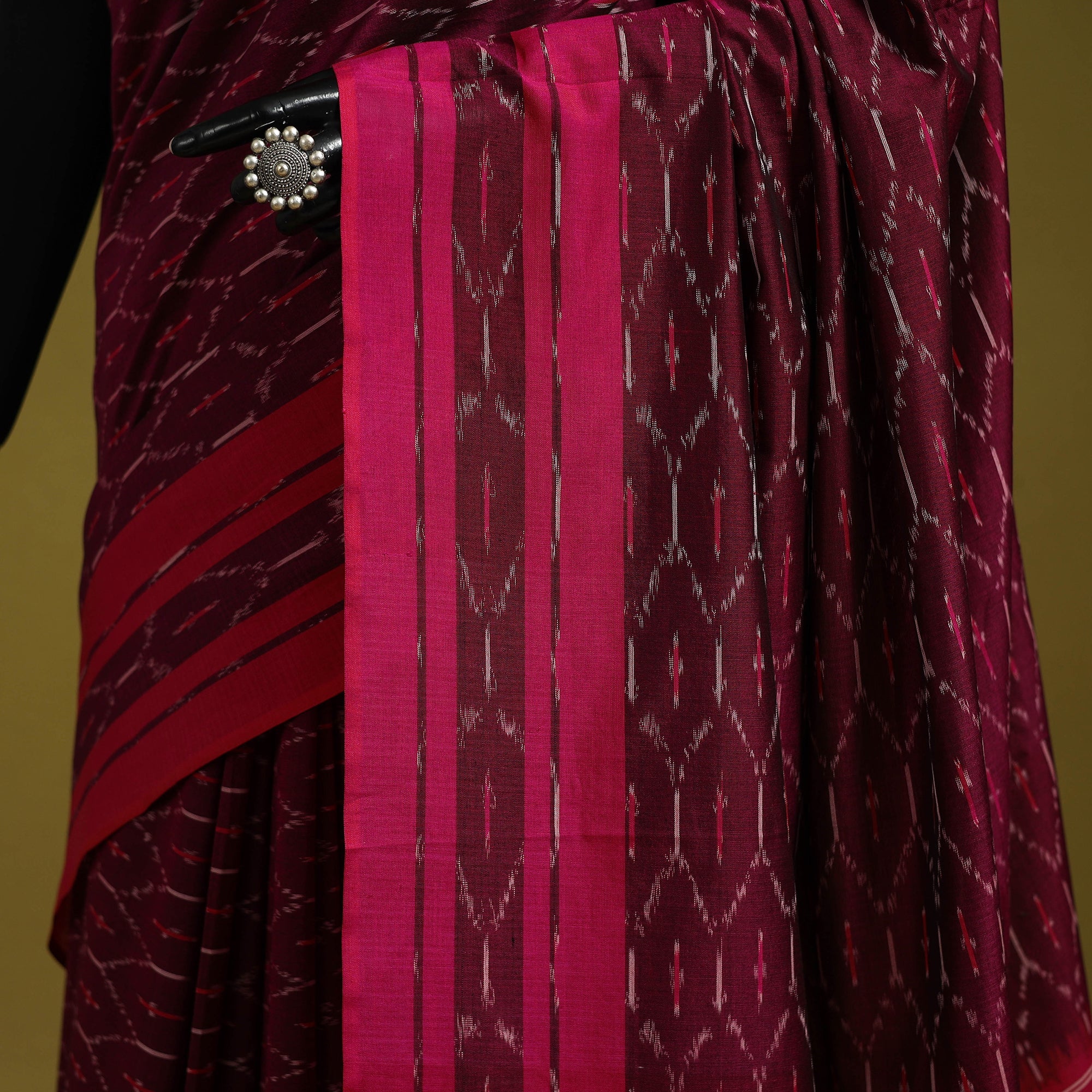 Purple handloom pochampally ikat saree, woven from mercerized cotton. The intricate Ikat patterns, achieved through the age-old resist-dyeing technique, reflect the heritage of Telangana’s skilled artisans. A statement piece that blends artistry and comfort, this saree is perfect for celebrations, cultural gatherings, or elevating your everyday style with effortless grace.