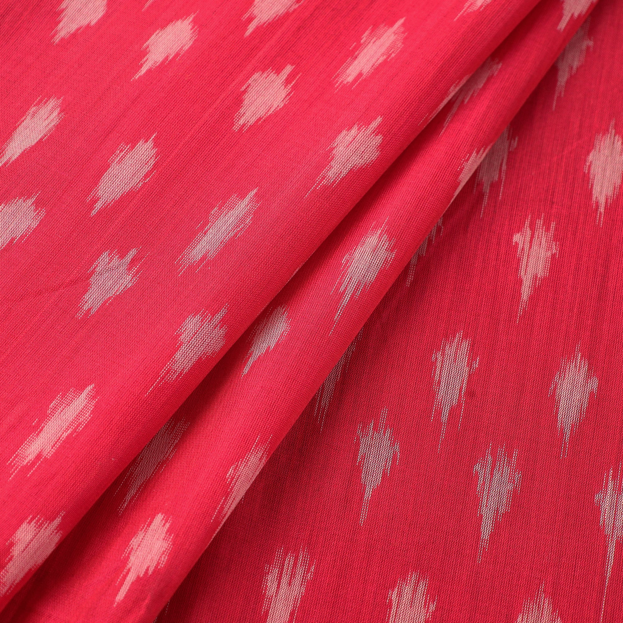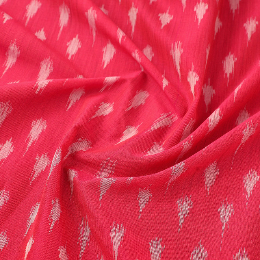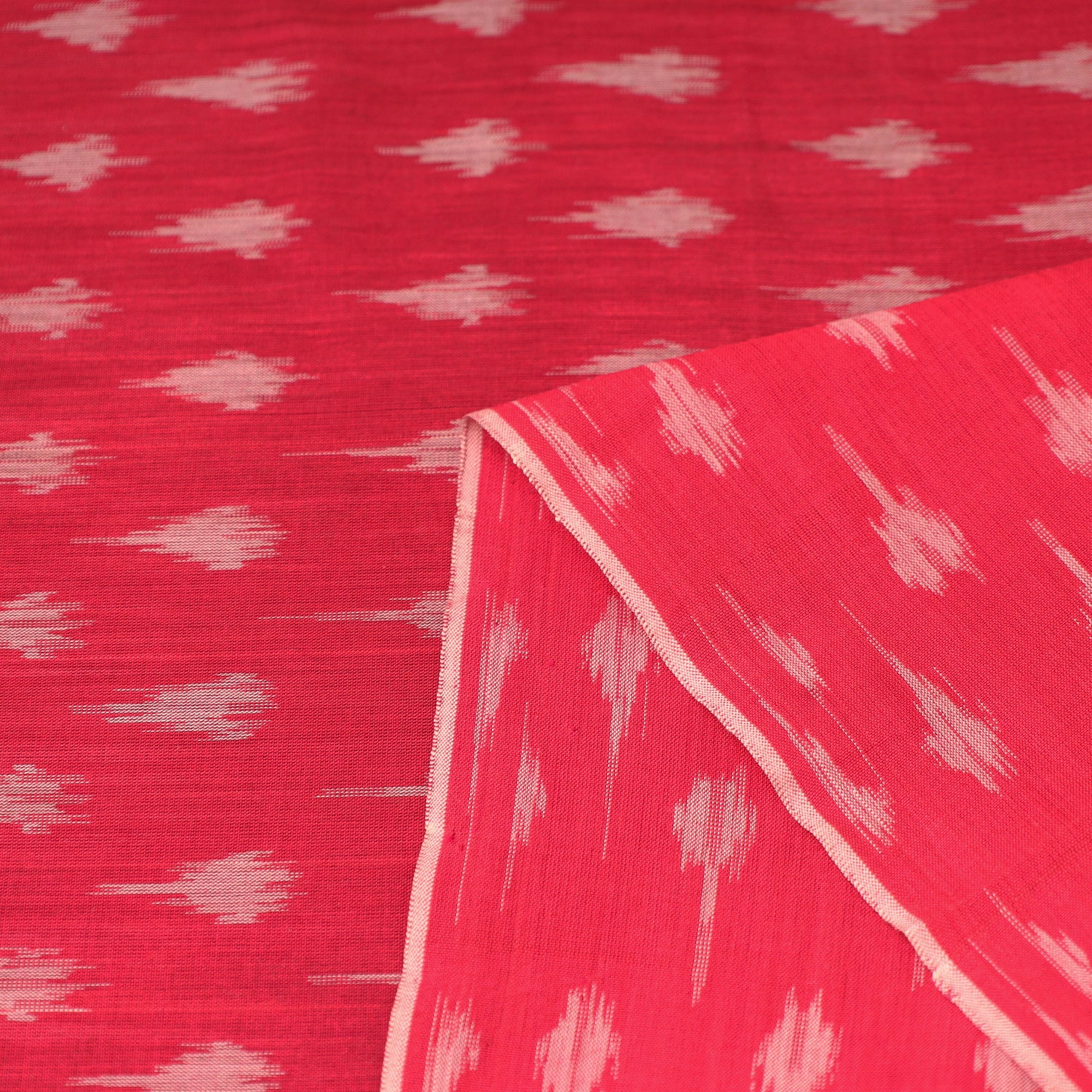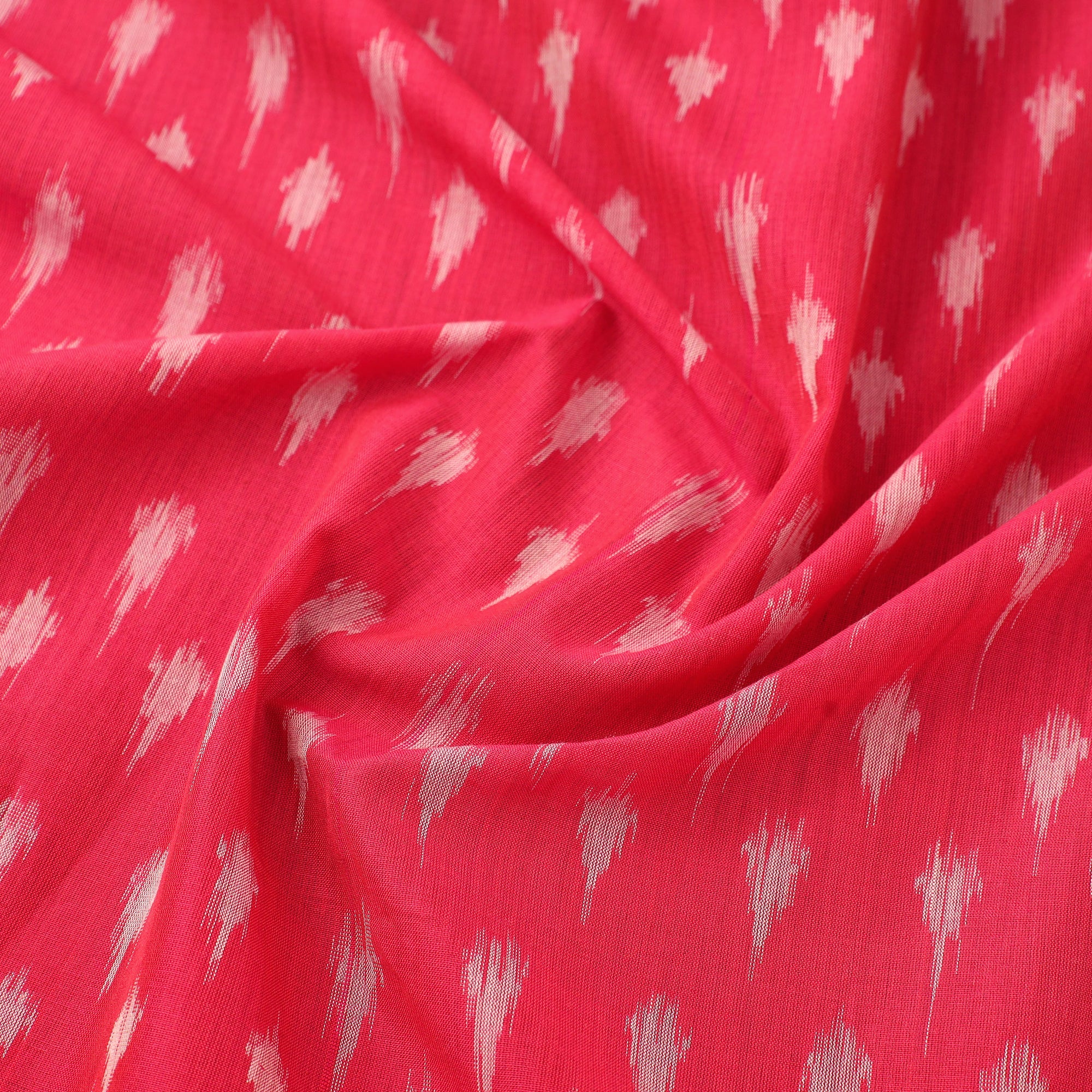 Fine quality mercerised cotton pink pochampally ikat fabric from village of Ramannapeta, Telangana. Ikat (Ikkat) is a dyeing technique used to pattern textiles that employs a resist dyeing process similar to tie-dye on either the warp or weft fibers prior to dyeing. Ikat has lovely patterns and are world famous for their extremely beautiful colors, texture and designs. Perfect for both traditional and modern projects.