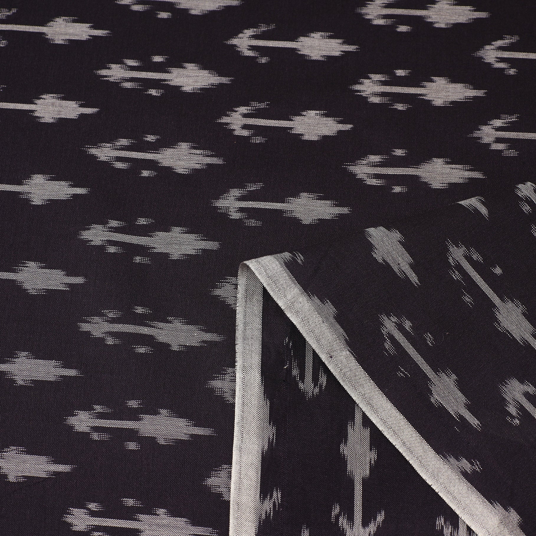 Fine quality mercerised cotton purple pochampally ikat fabric from village of Ramannapeta, Telangana. Ikat (Ikkat) is a dyeing technique used to pattern textiles that employs a resist dyeing process similar to tie-dye on either the warp or weft fibers prior to dyeing. Ikat has lovely patterns and are world famous for their extremely beautiful colors, texture and designs. Perfect for both traditional and modern projects.