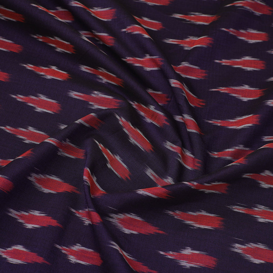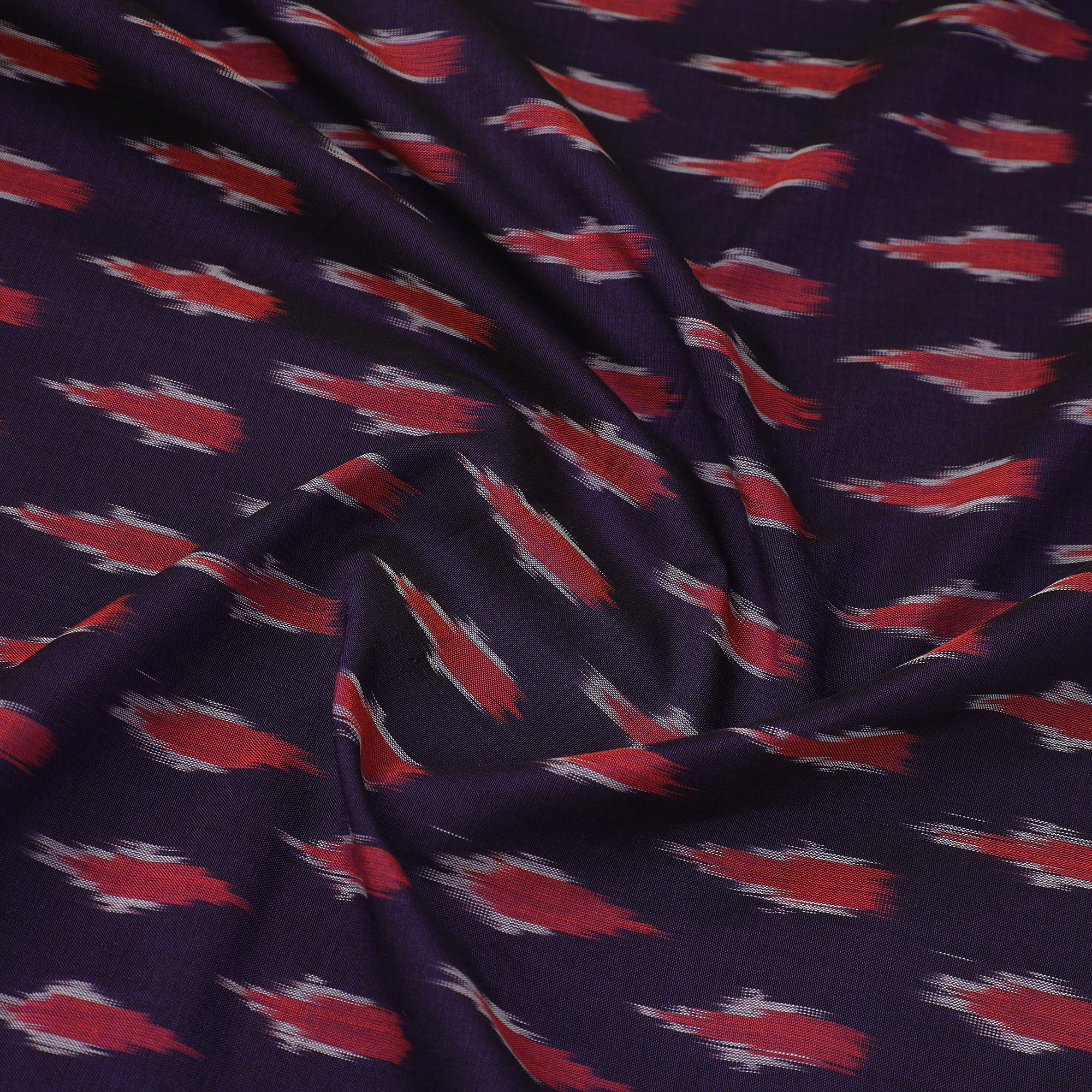 Fine quality mercerised cotton purple pochampally ikat fabric from village of Ramannapeta, Telangana. Ikat (Ikkat) is a dyeing technique used to pattern textiles that employs a resist dyeing process similar to tie-dye on either the warp or weft fibers prior to dyeing. Ikat has lovely patterns and are world famous for their extremely beautiful colors, texture and designs. Perfect for both traditional and modern projects.