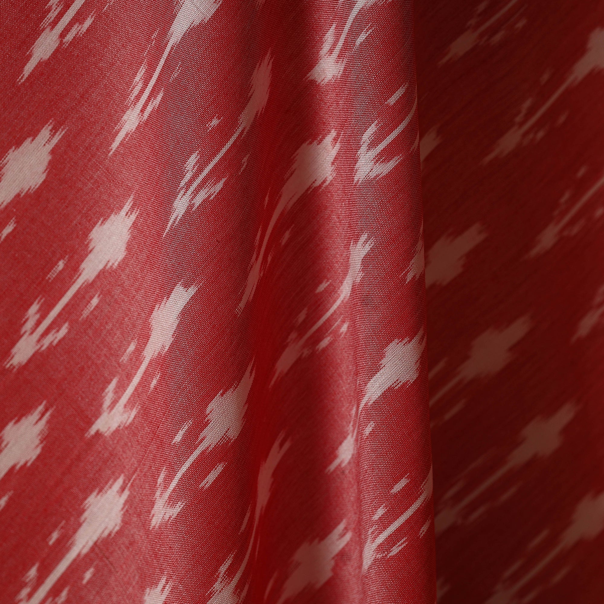 Explore pink mercerised cotton pochampally ikat fabric from Telangana. This fabric is created using the traditional resist-dyeing technique, where threads are dyed before weaving to form striking patterns. Known for its vibrant colors and smooth texture, it beautifully blends tradition with modern style. Perfect for making sarees, kurtas, home decor and creative fashion projects.